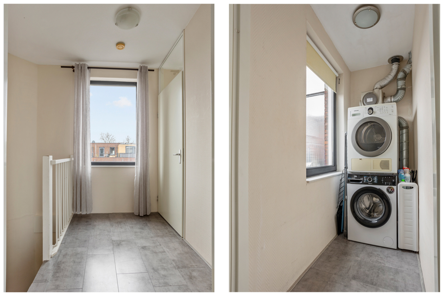 Overloop met toegang tot de lichte wasruimte aan de achterzijde met opstelplaats voor wasmachine en droger. Ruime 3e slaapkamer aan de voorzijde met frans balkon en direct toegang tot de tweede badkamer. Deze badkamer is voorzien van douche en wastafelmeubel.