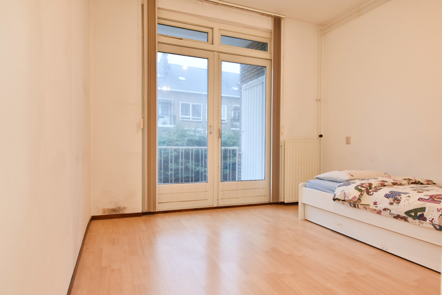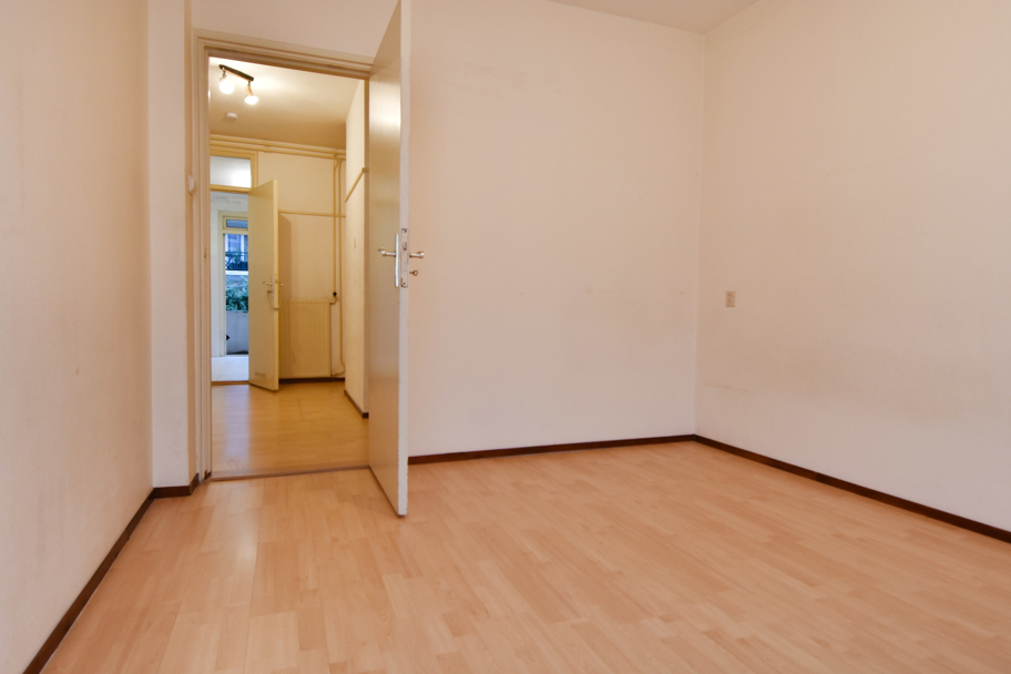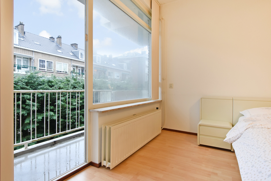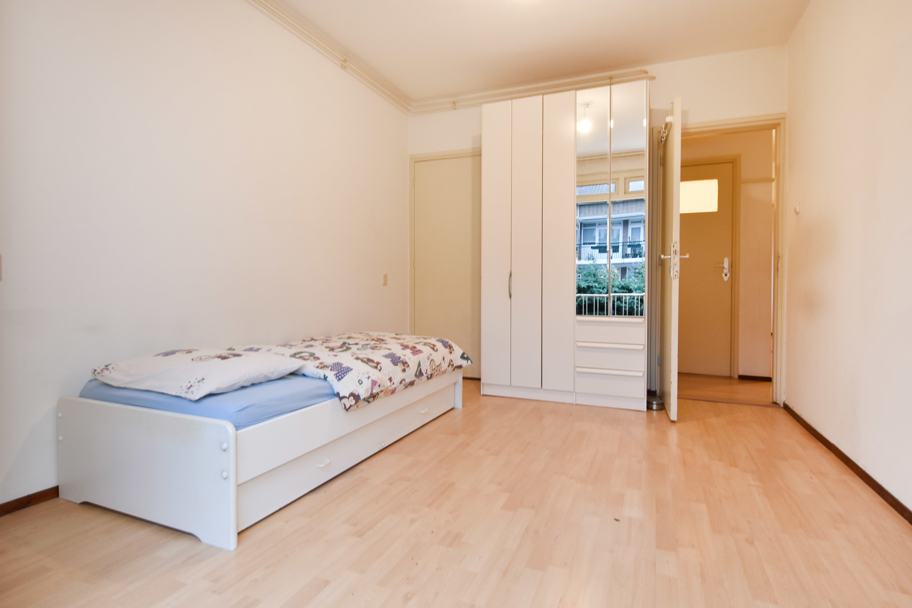 De laatste (slaap)kamer ligt aan de voorzijde. Ook deze is ruim en licht en kijkt uit over de rustige en sfeervolle Paulinastraat.