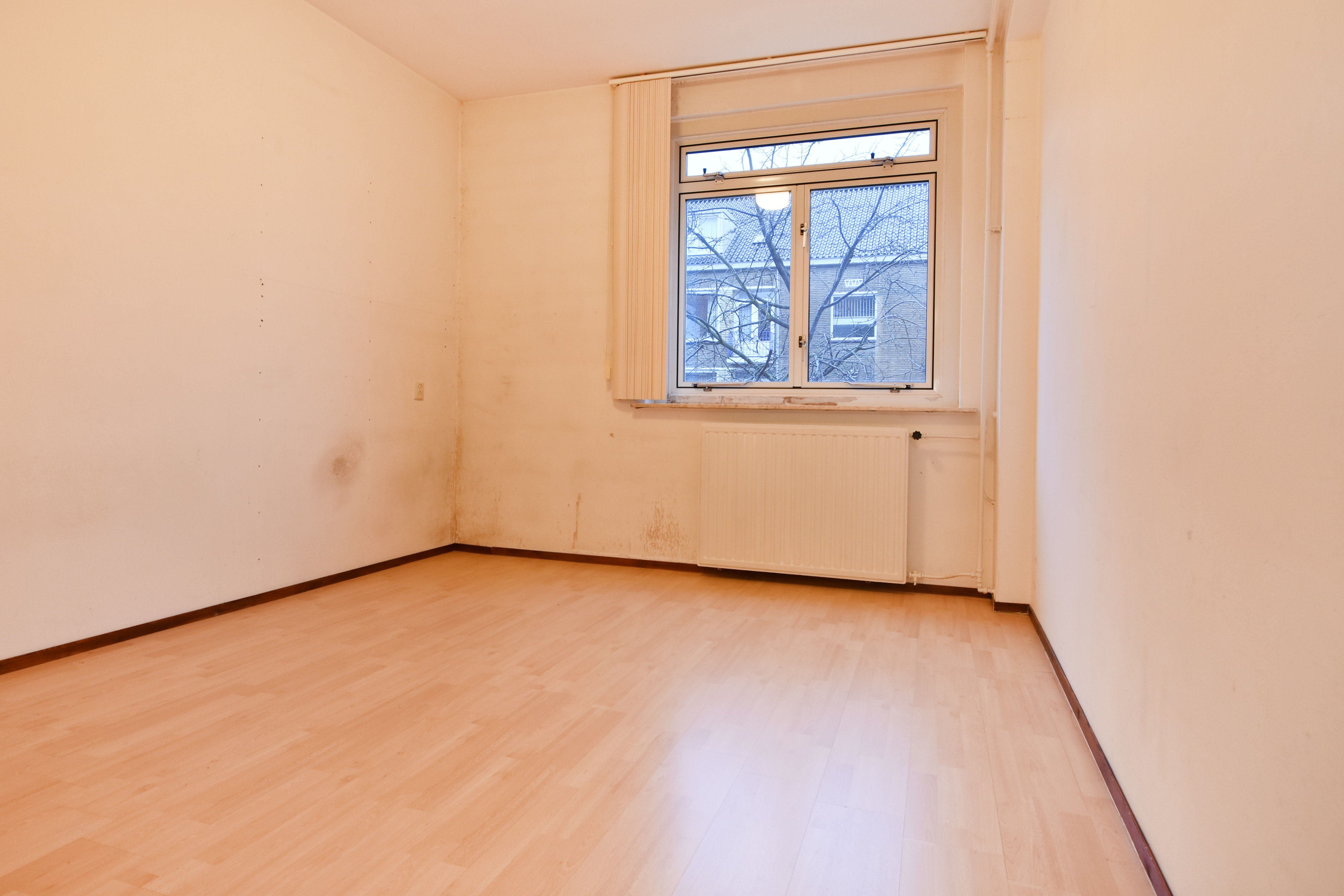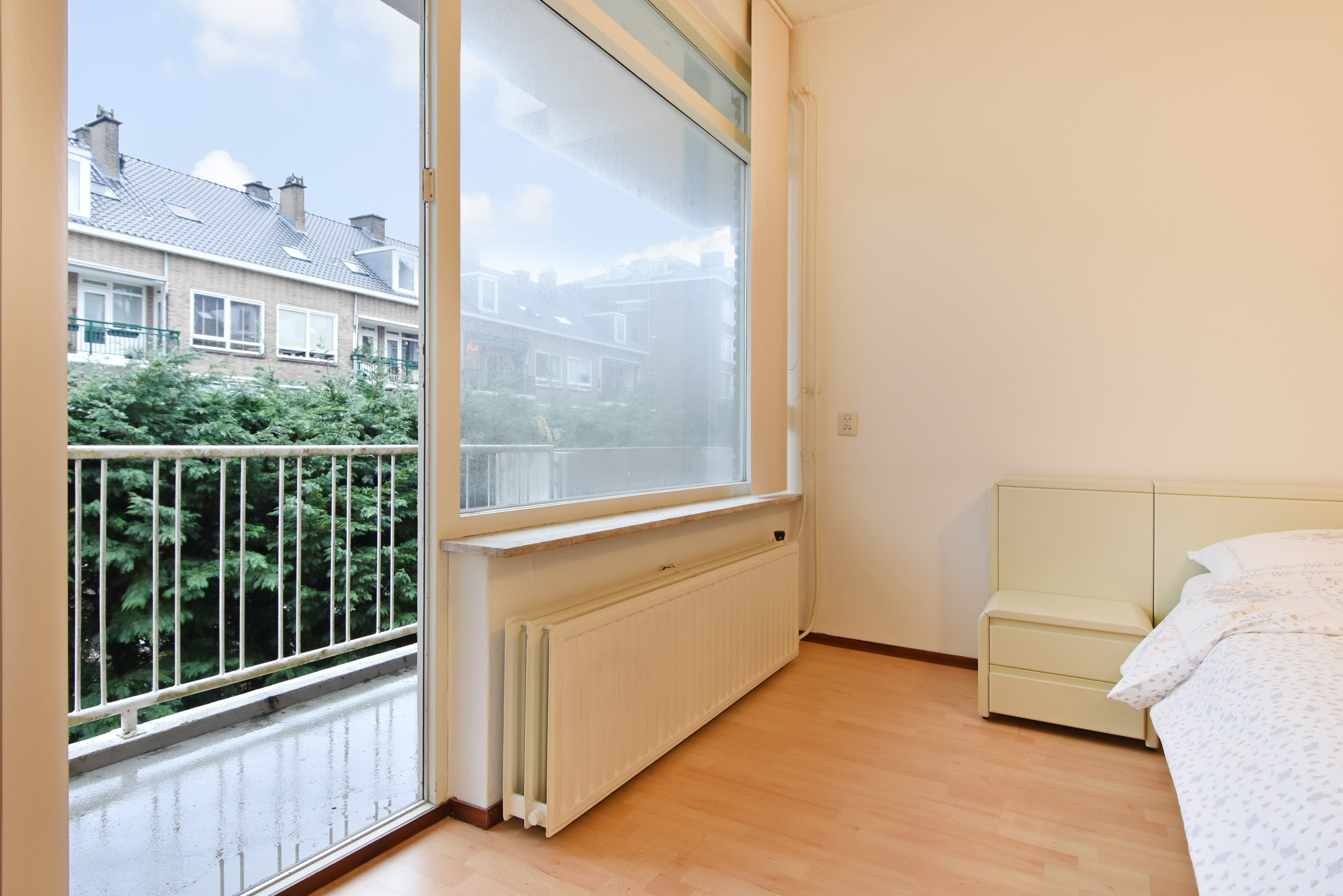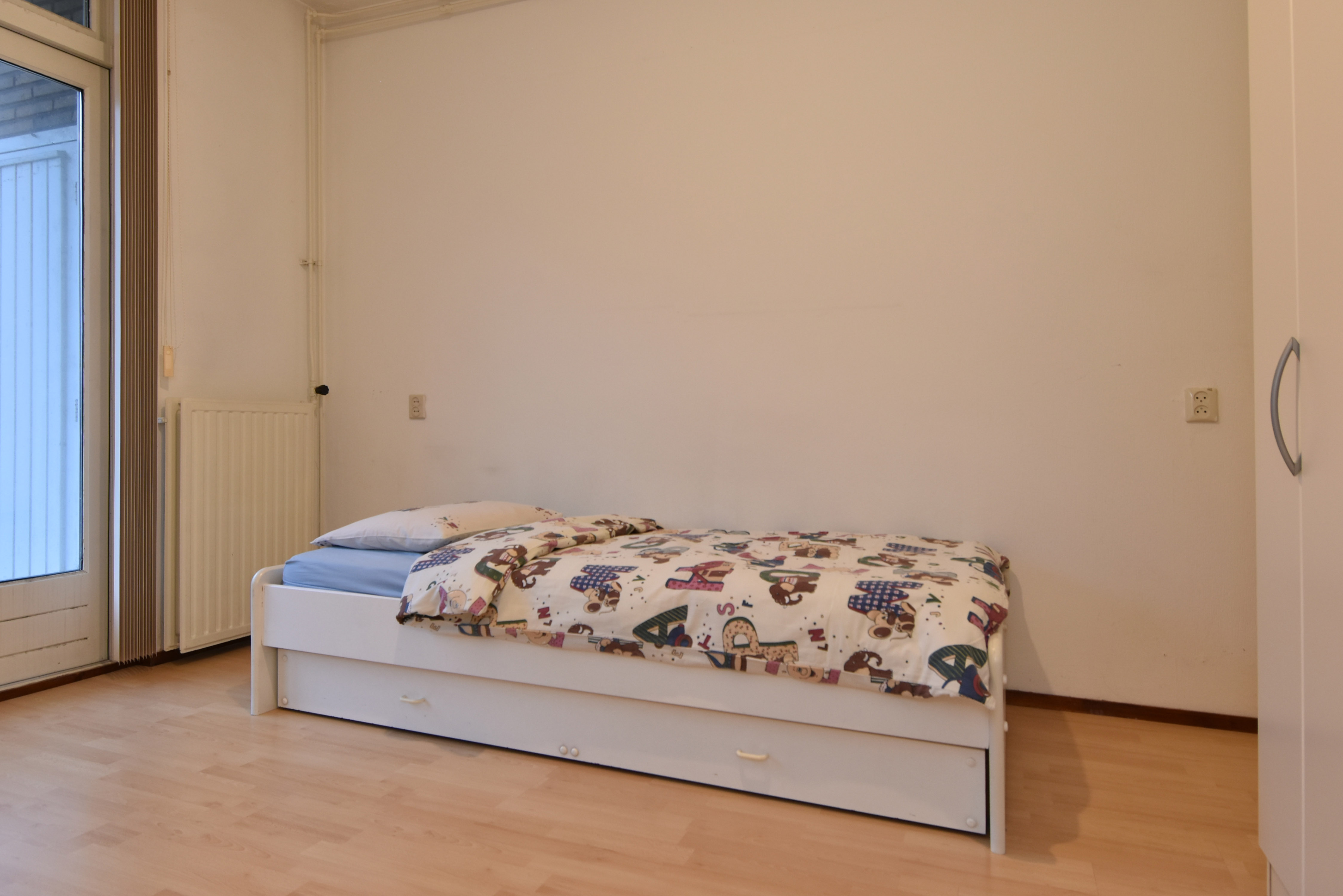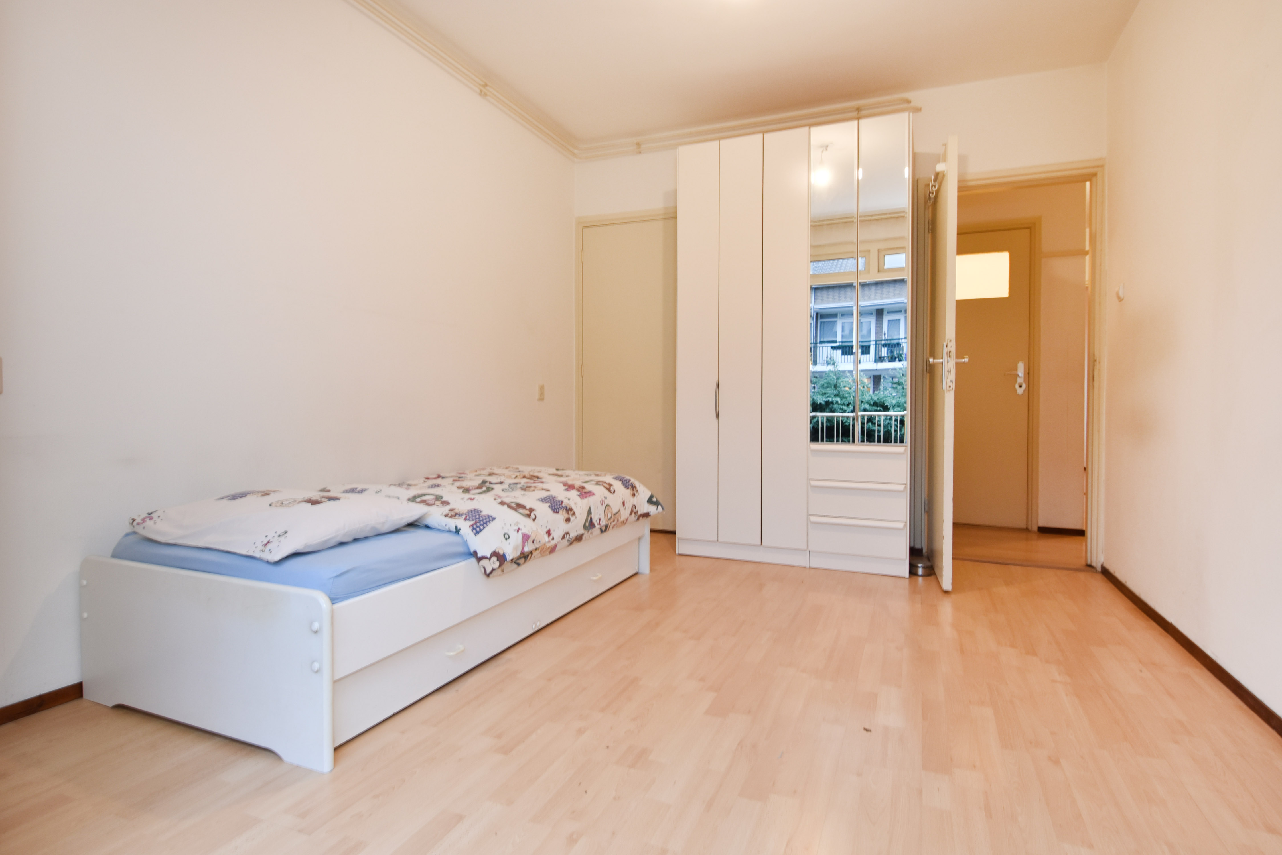 The final (bed)room is at the front. This is also spacious and bright, overlooking the quiet and charming Paulinastraat.