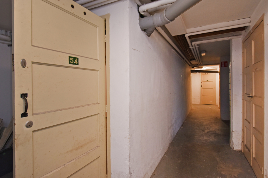 The bicycle shed is located in the basement; it is more than spacious, with a size of almost 19 m², offering ample space for bicycles and other belongings.