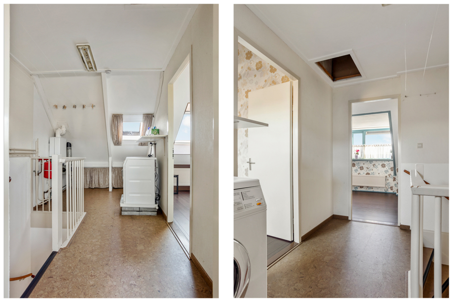 Op de ruime voorzolder is toegang tot de vliering, de opstelplaats voor wasmachine en droger en de cv-ketelopstelling met volop ruimte om de was te drogen.