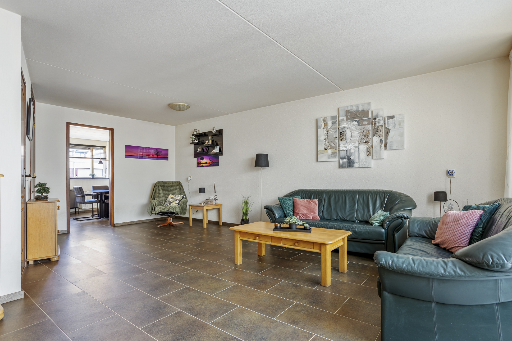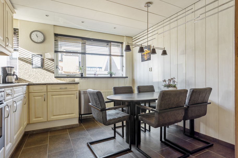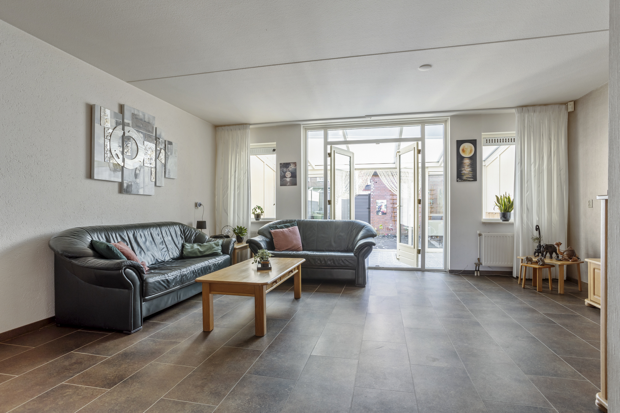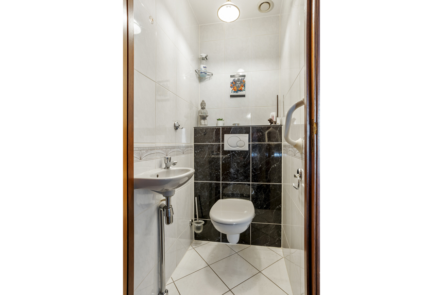 De woonkamer is ruim opgezet en beschikt over een zeer royale provisiekast, ideaal voor extra voorraad en bergruimte. Middels openslaande deuren bereikt u de aangebouwde serre, die zorgt voor een heerlijke verlenging van de leefruimte en een mooie overgang naar de zonnige achtertuin.
