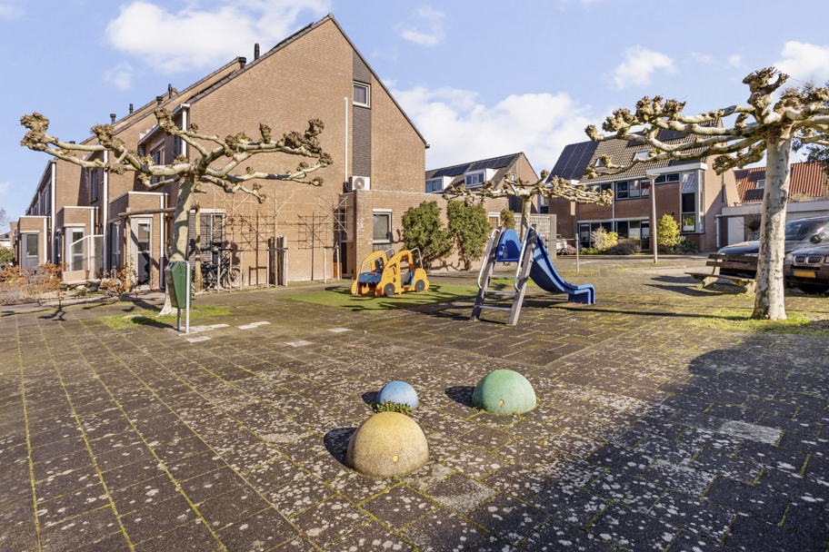 De achtertuin is prettig gelegen en beschikt over een stenen berging en een achterom.
