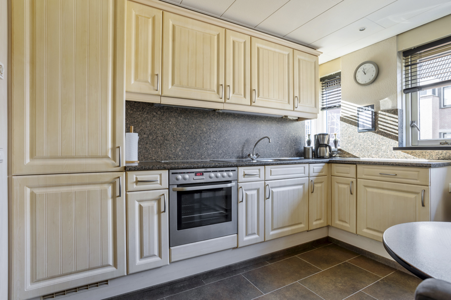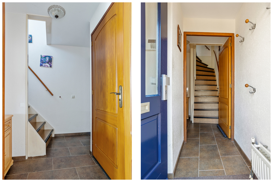 Via de entree komt u in de hal met meterkast een tochtportaal. Hier bevindt zich tevens het toilet met fonteintje. Vanuit de hal heeft u toegang tot de woonkamer. Aan de voorzijde van de woning bevindt zich de afgesloten keuken, uitgevoerd in een praktische hoekopstelling.