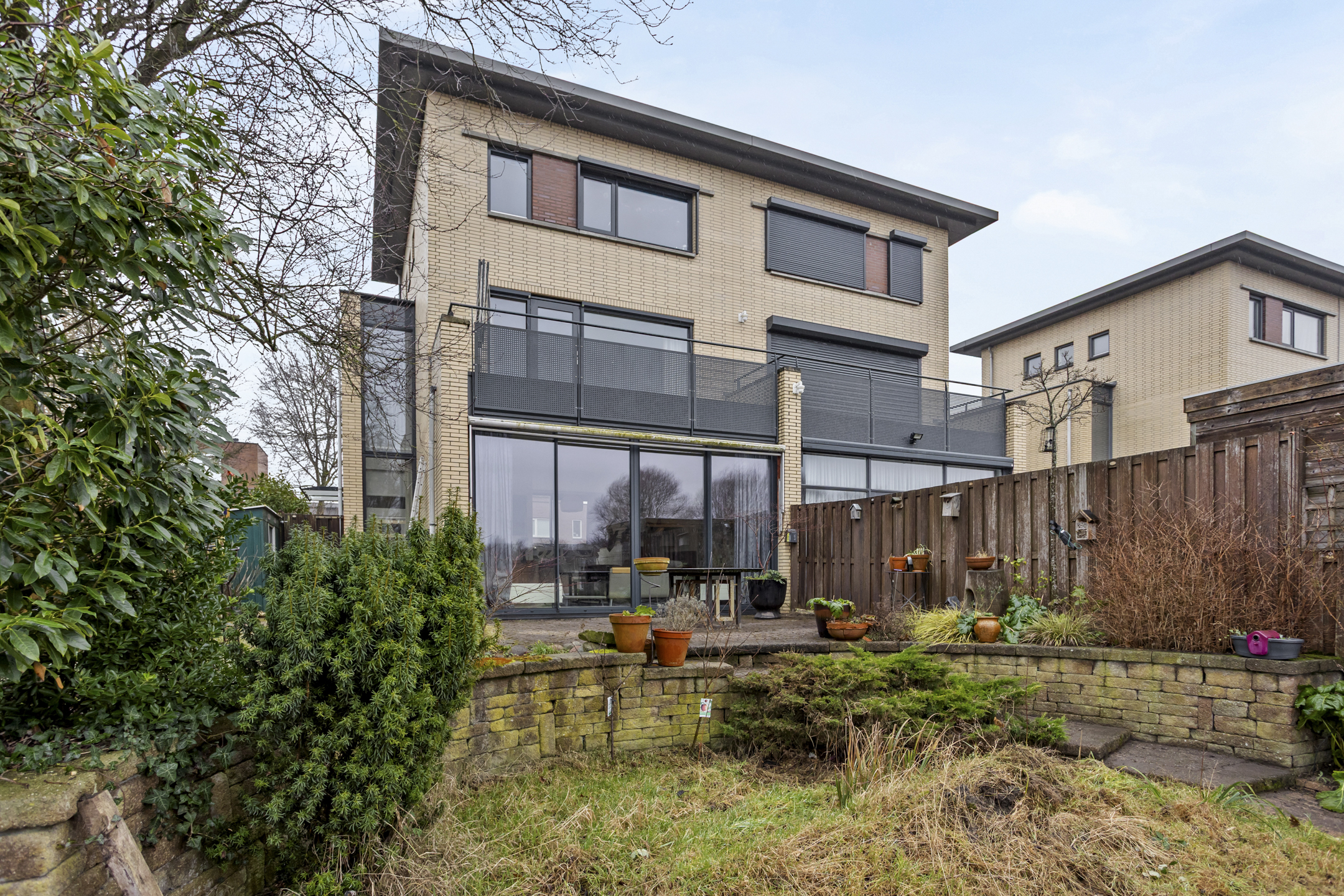 De woning beschikt over zowel een zonnige voortuin als achtertuin, waardoor u op elk moment van de dag van de zon kunt genieten. Tevens heeft de woning een balkon aan de voorzijde en op de 1e verdieping een ruim dakterras, aangrenzend aan een slaapkamer. Daarnaast is de woning duurzaam uitgerust met 8 zonnepanelen (eigendom).