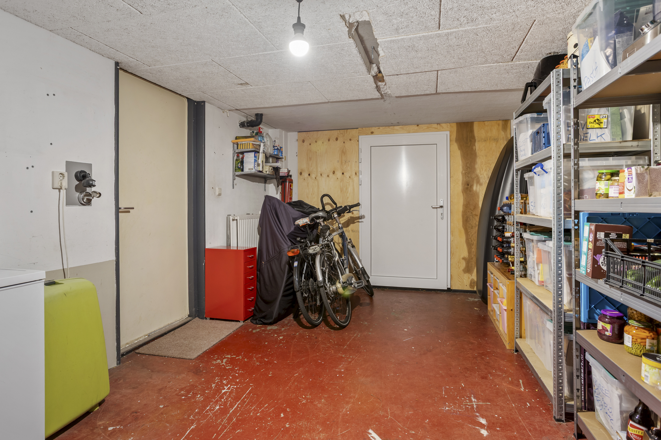 * Voormalige garage in de onderbouw, thans in gebruik als bergruimte, deze is zowel van de buiten als van de binnenzijde te bereiken