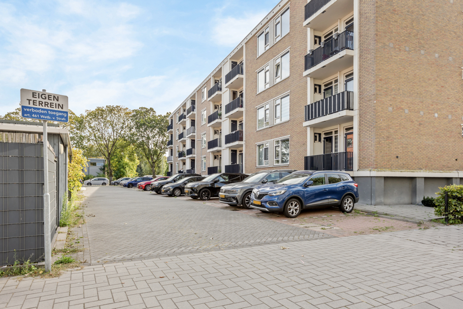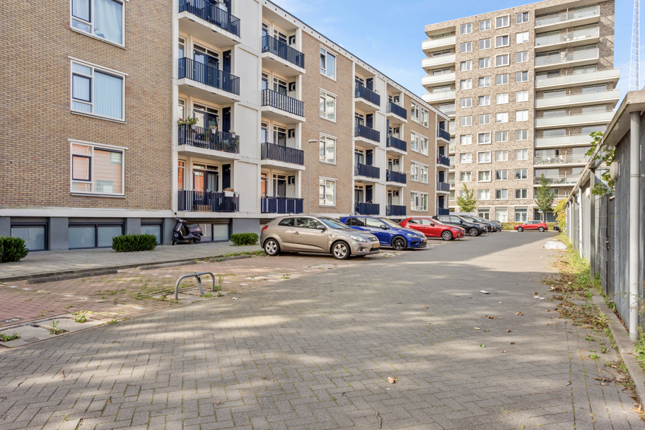 Aan de achterzijde van het complex is het privé parkeerterrein bereikbaar waar u een eigen parkeerplaats heeft afgesloten middels een parkeerbeugel.