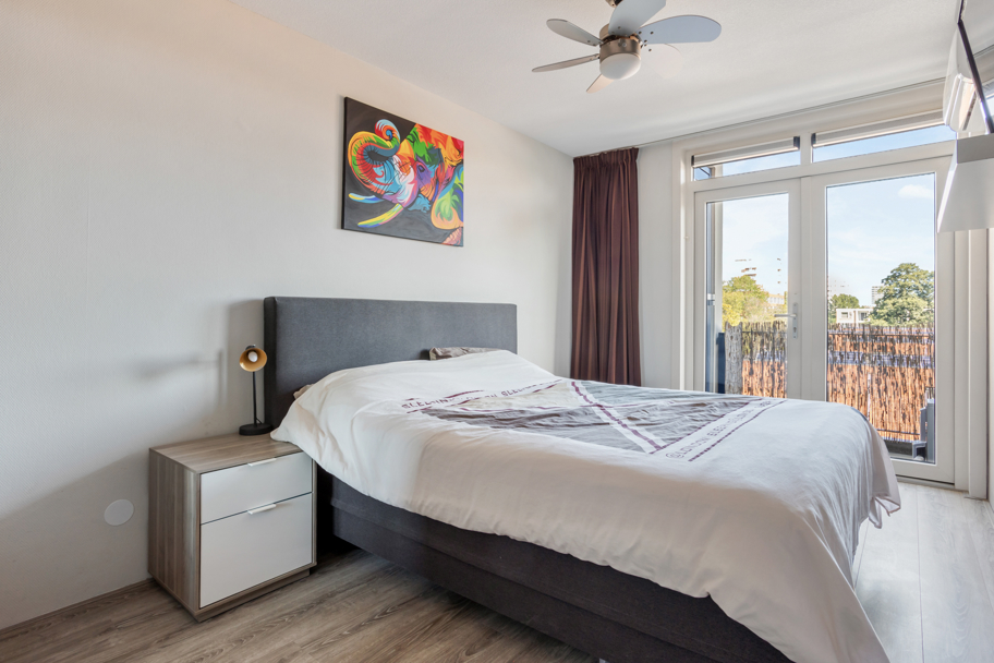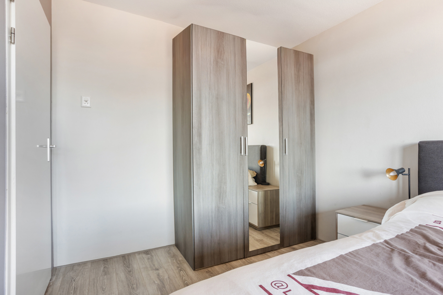 Aan de achterzijde ligt de ruime hoofdslaapkamer en de 3e slaapkamer. Via de hoofdslaapkamer bereikt u het 2e balkon met vaste kast waar u van het ochtendzonnetje kunt genieten.