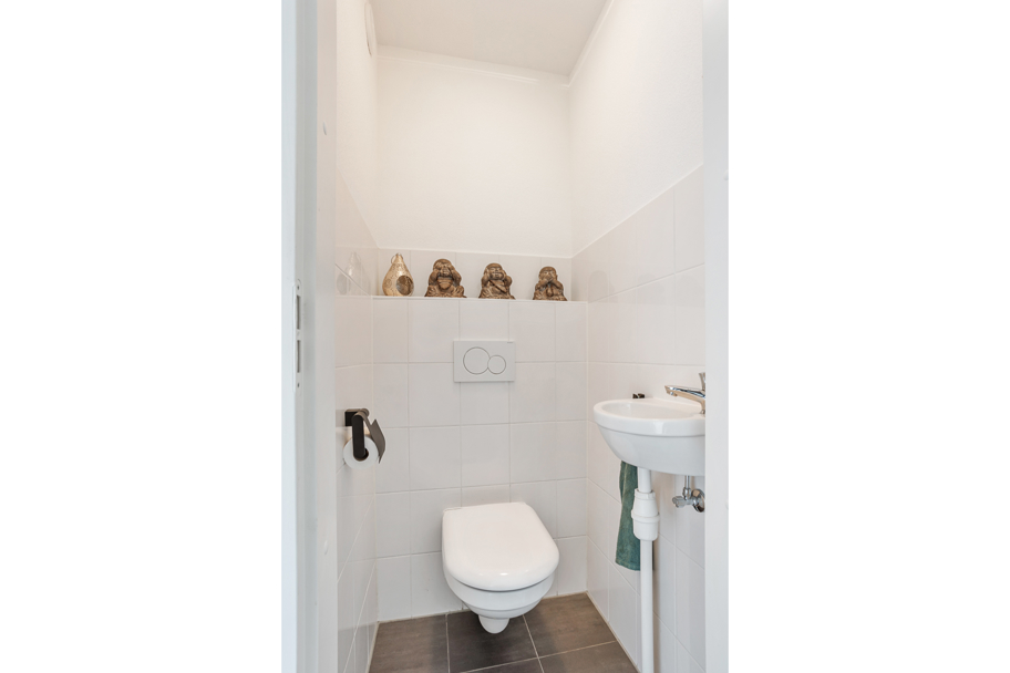 Entree, gang met uitgebreide meterkast, separaat verzorgd toilet en toegang tot alle overige ruimtes.