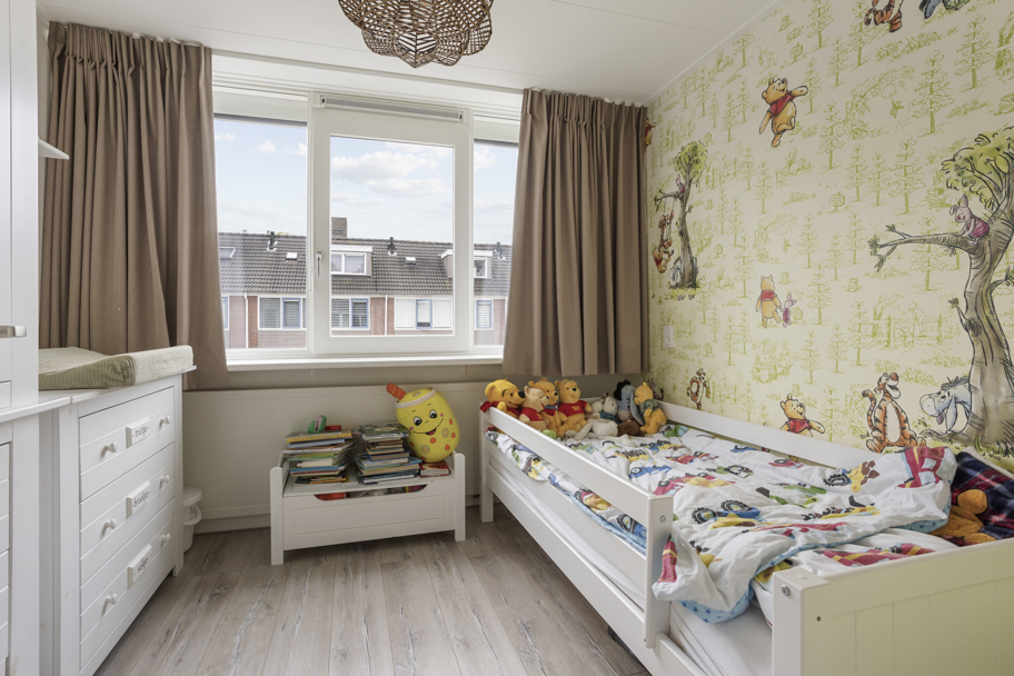 Een lichte overloop geeft toegang tot 2 slaapkamers aan de achterzijde met rolluiken en 1 slaapkamer aan de voorzijde. Alle kamers hebben grote raampartijen met isolatieglas. De kamers zijn daardoor heerlijk licht en comfortabel.