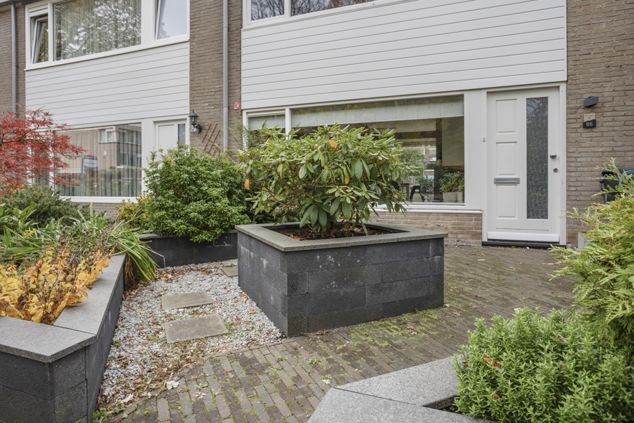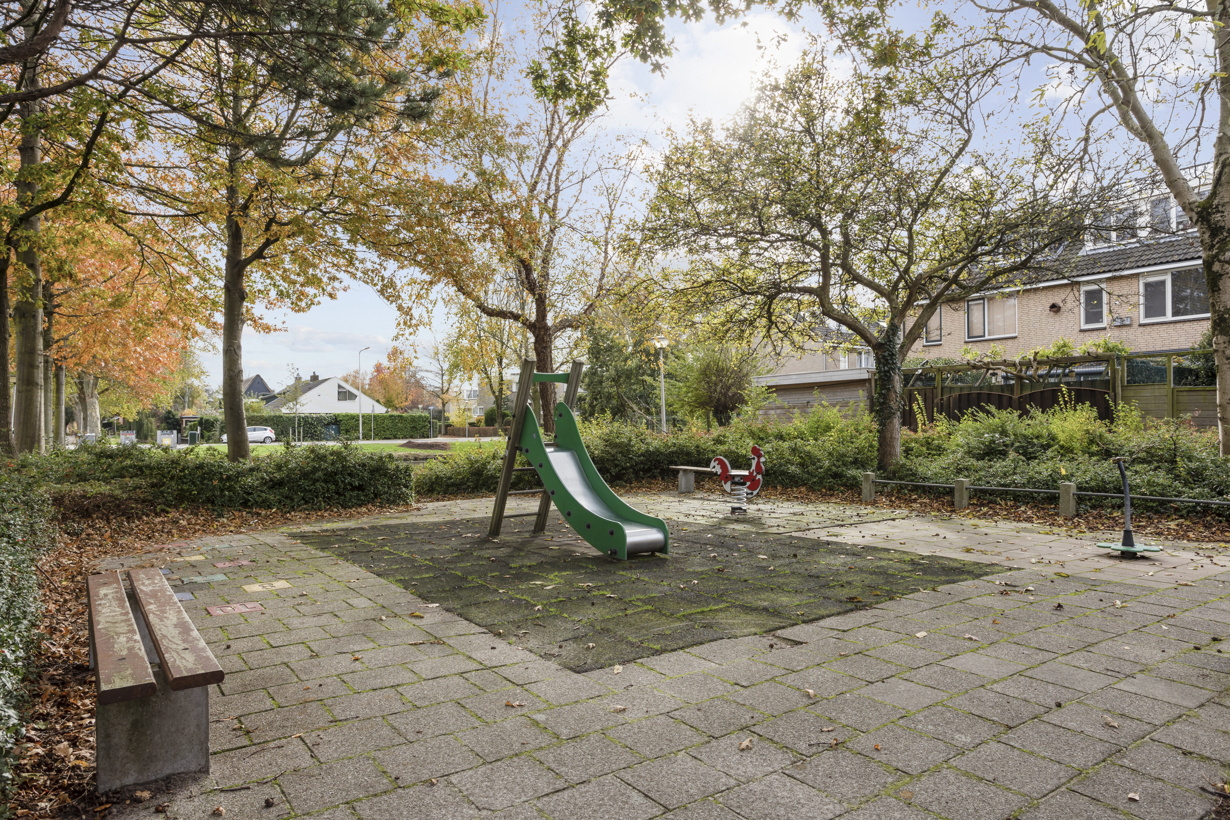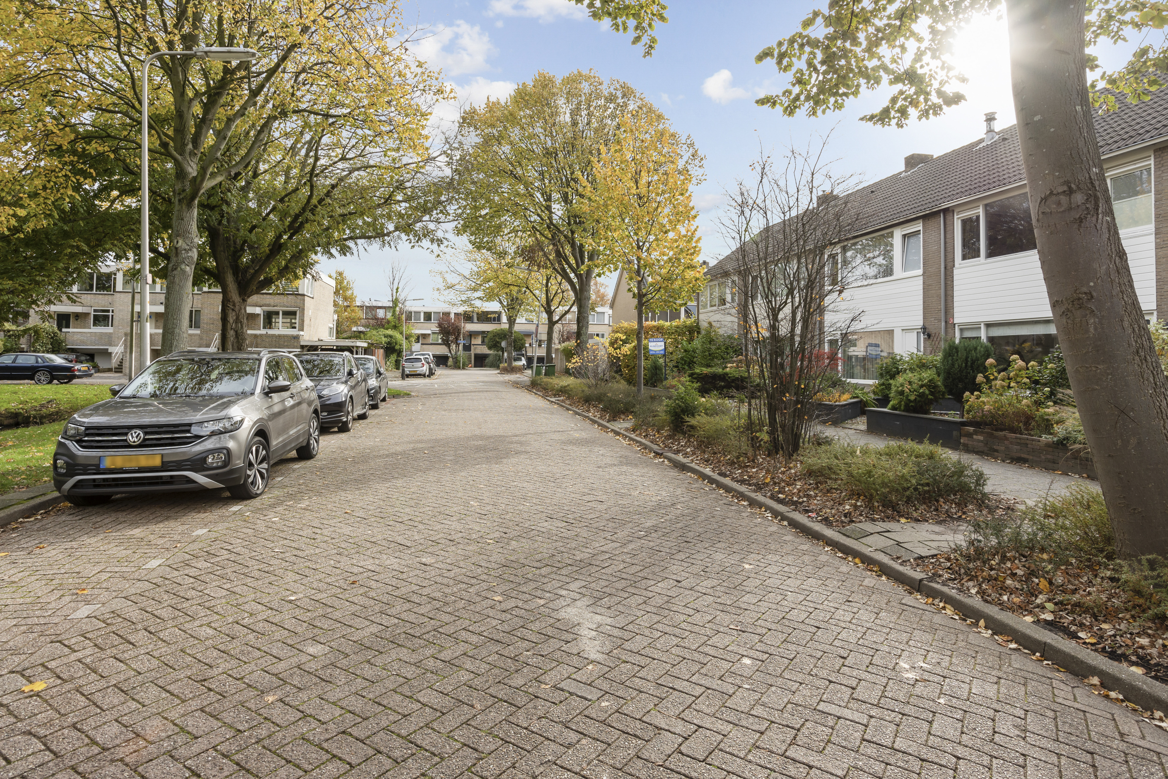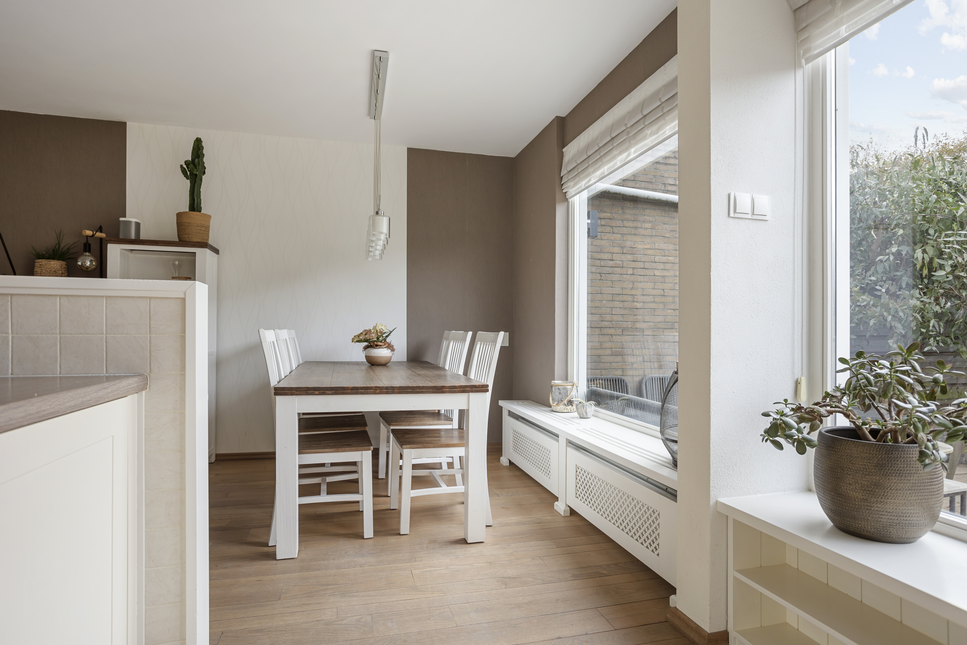 Vanuit de keuken heeft u toegang tot de zonnige en verzorgde achtertuin met groene borders en een pergola. De tuin is breed en ruim waardoor er genoeg ruimte voor kinderen is om te spelen en om een heerlijke zit te maken om van het zonnetje te genieten.