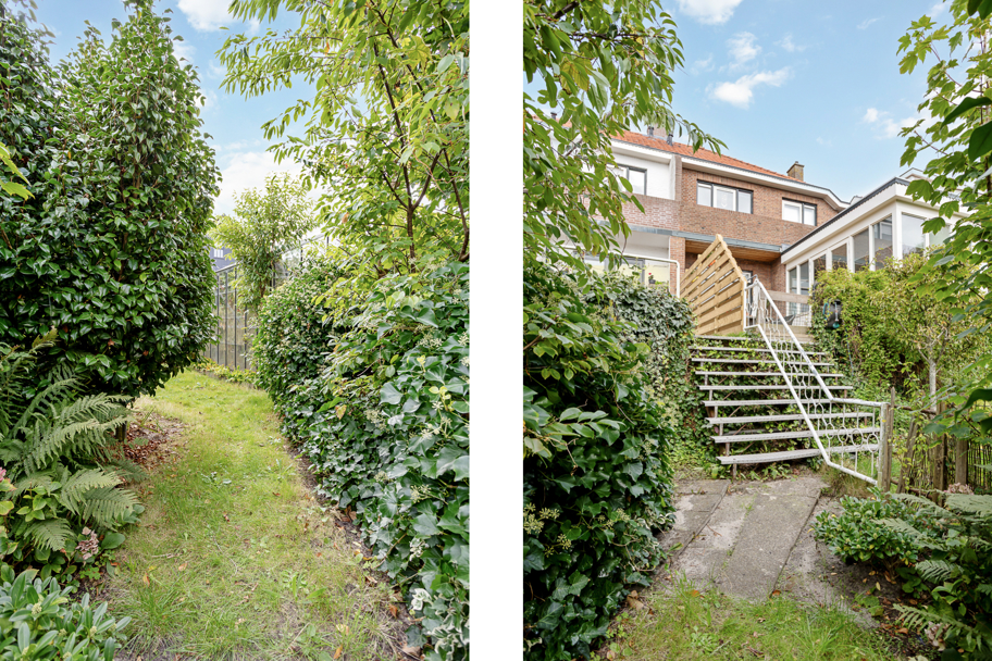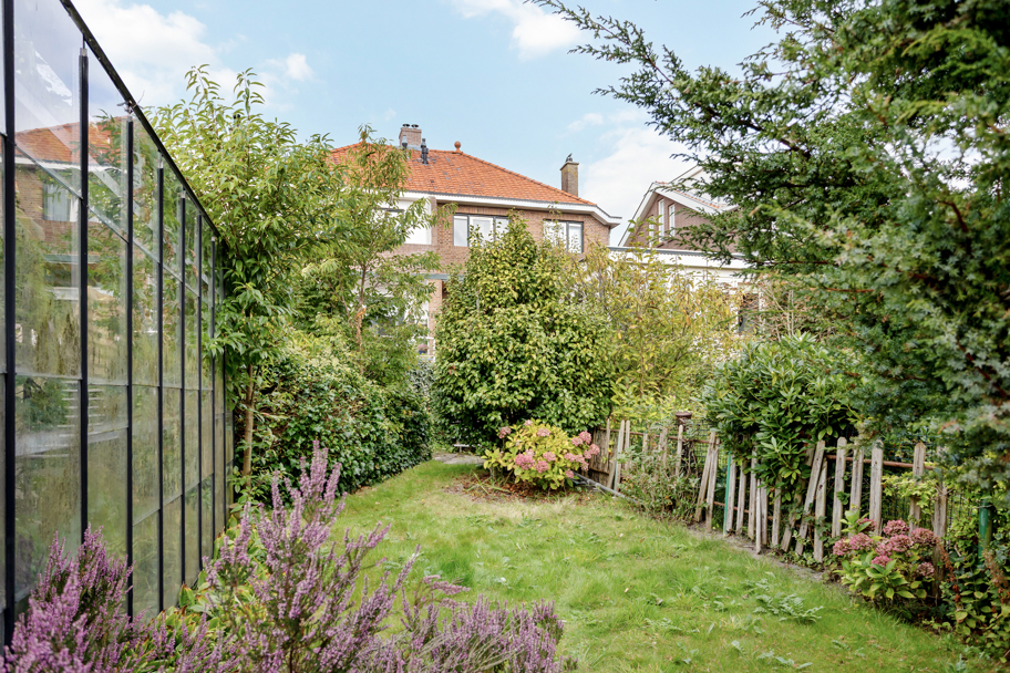 De achtertuin is bijzonder ruim en biedt veel privacy. Achterin de tuin staat een charmante druivenkas, ideaal voor de tuinliefhebber of hobbyist. De ligging aan het water zorgt voor een uniek en rustgevend uitzicht.