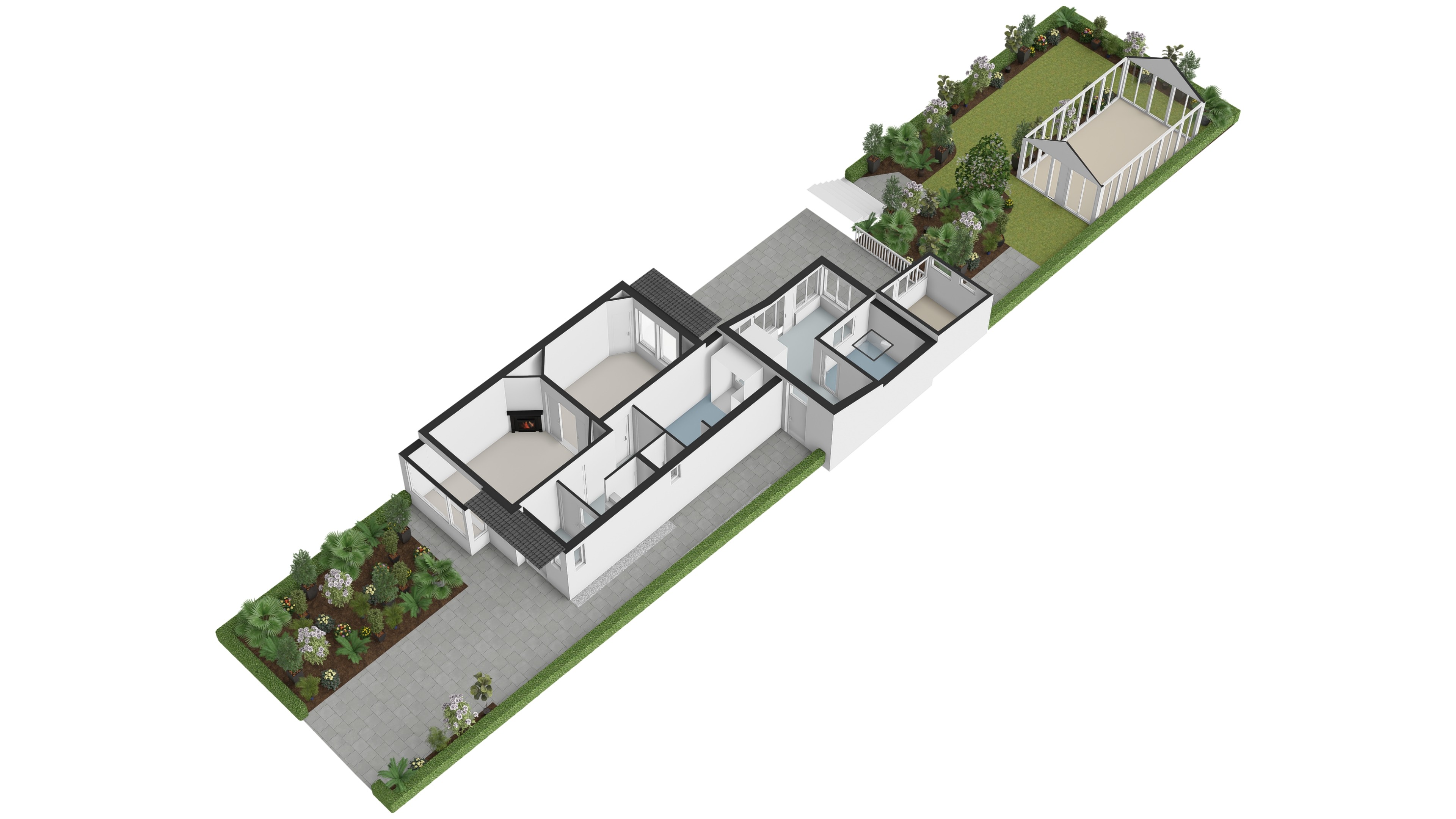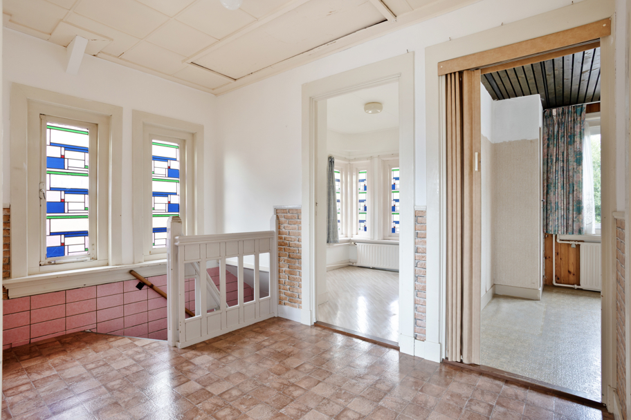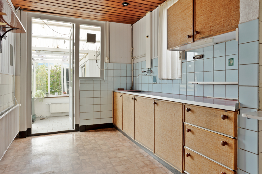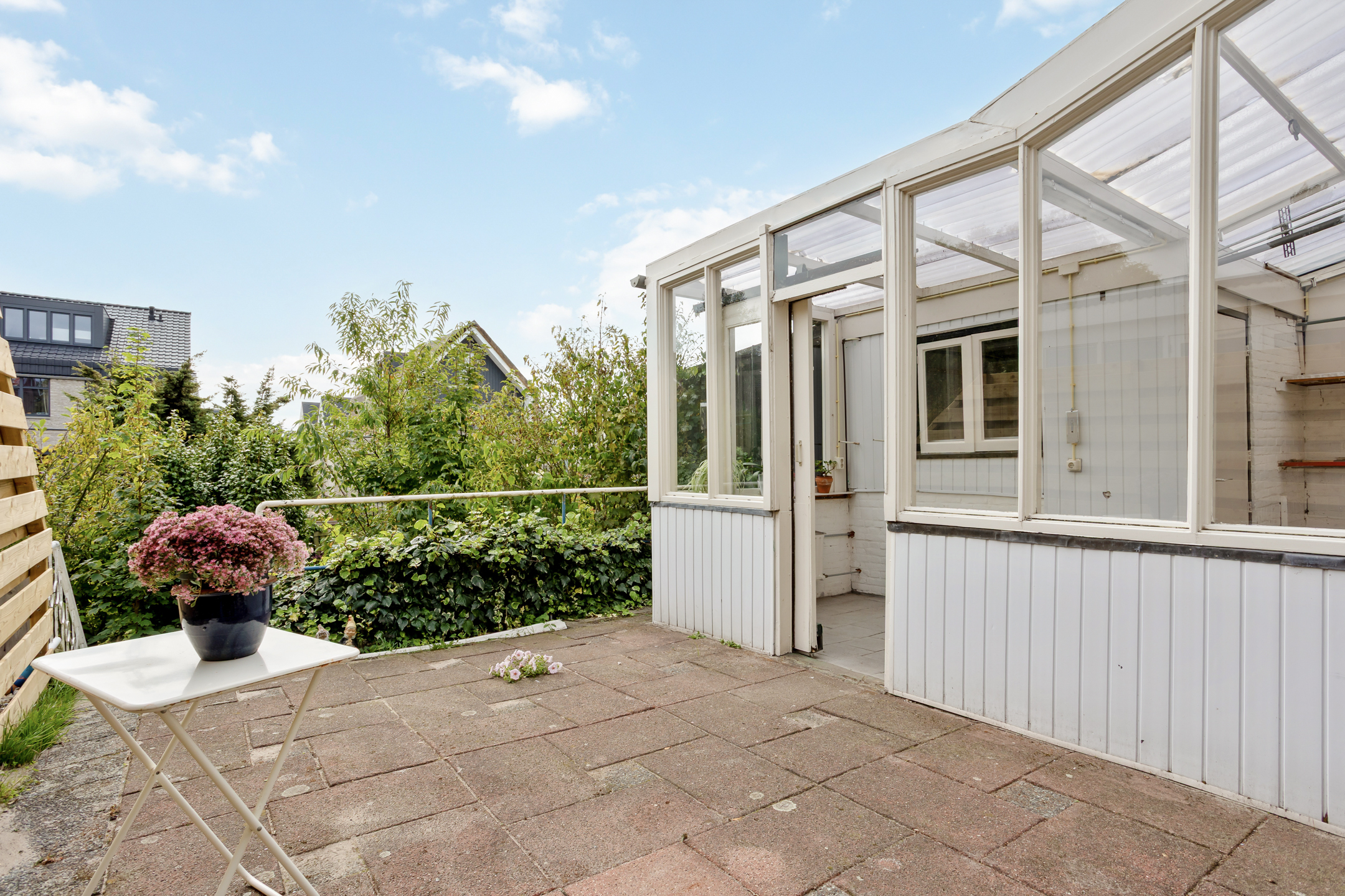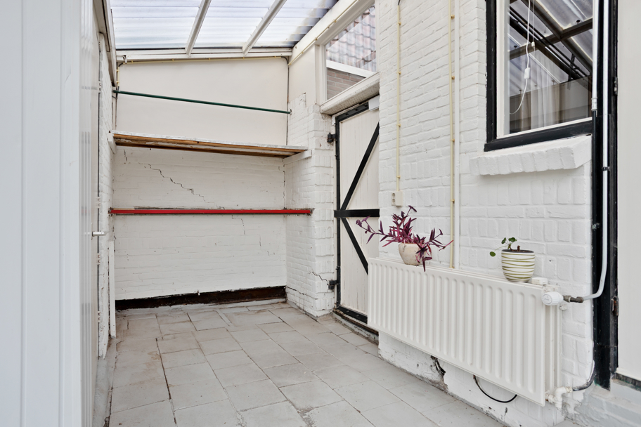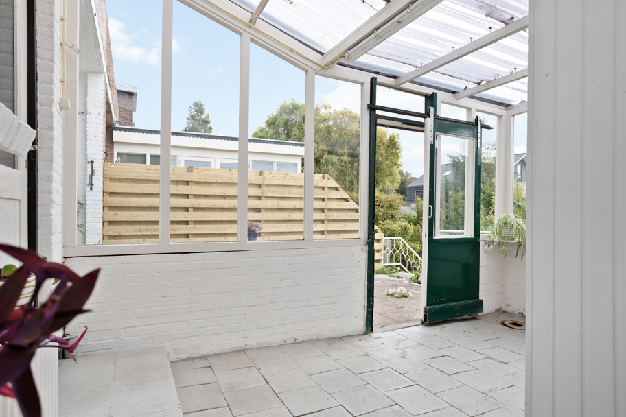 De sfeervolle woonkamer en suite is voorzien van een authentieke open haard en biedt uitzicht op zowel de voor- als achterzijde van de woning. De afgesloten keuken grenst aan een aangebouwde serre, welke extra woonruimte en licht toevoegt. Aangrenzend bevindt zich nog een extra ruimte, voorheen in gebruik als doucheruimte. Tevens is er op het niveau van het achtergelegen perceel nog een schuur aanwezig en daaronder, op tuinniveau, nog een kleine schuur om tuinartikelen in te plaatsen. Het beschutte, op het zuiden gelegen terras biedt zomer en winter een heerlijke plek om van de zon te genieten.
