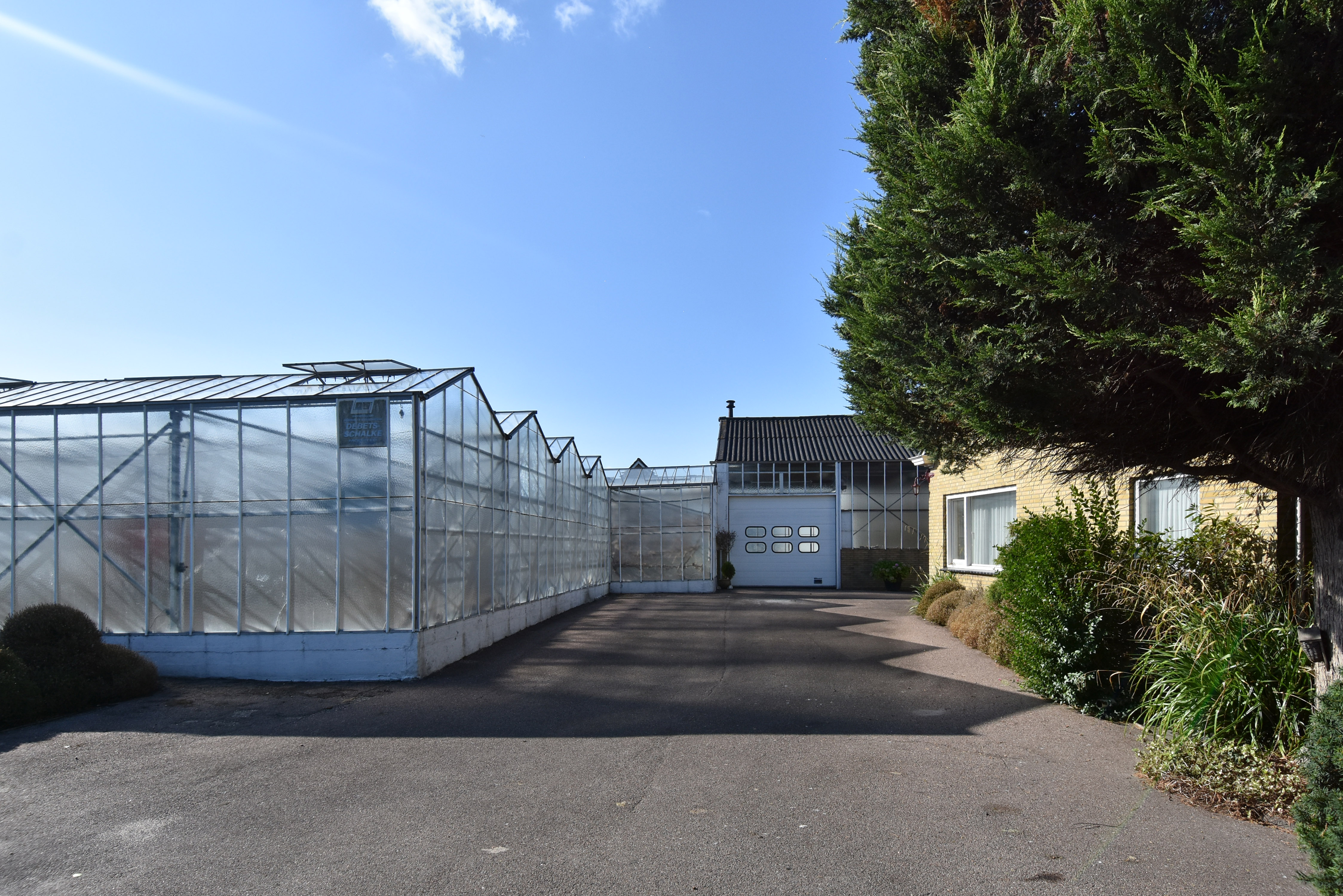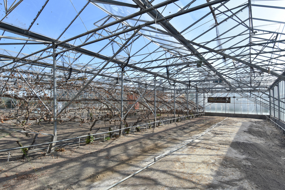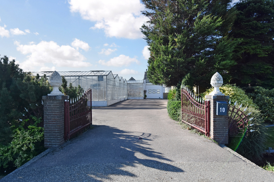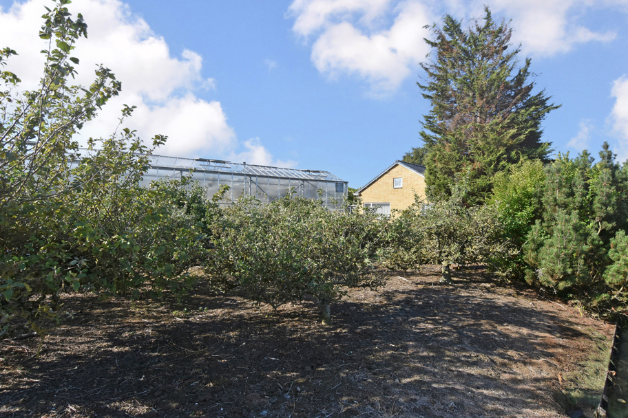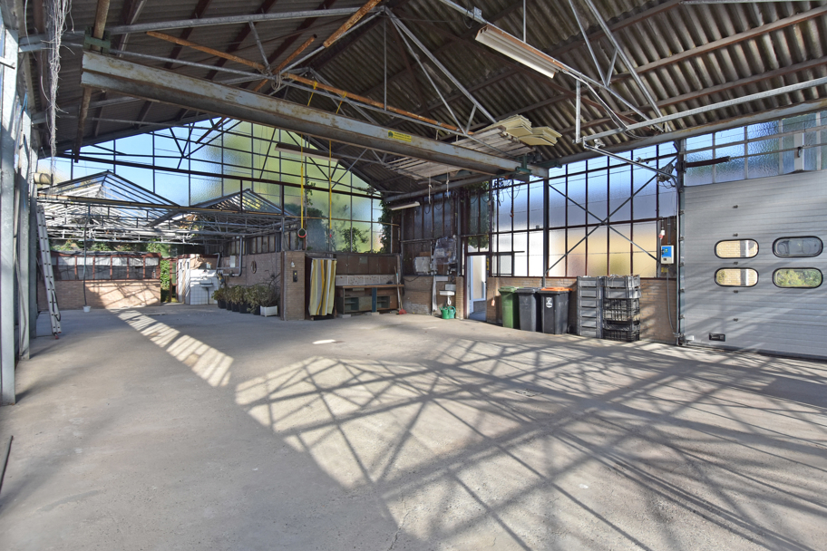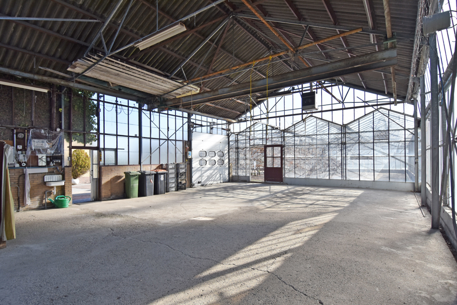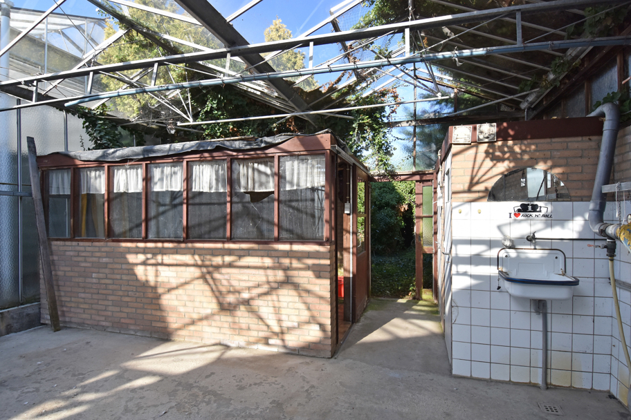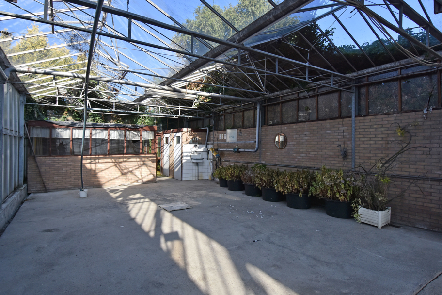Door middel van een hoge schuifdeur en een loopdeur bereikt u via de schuur de tevens grote kas. Hier is genoeg ruimte is om uw eigen bloemen, fruit en/of groenten te telen. Voor de kas, ligt een groot stuk grond met daarop fruitbomen.