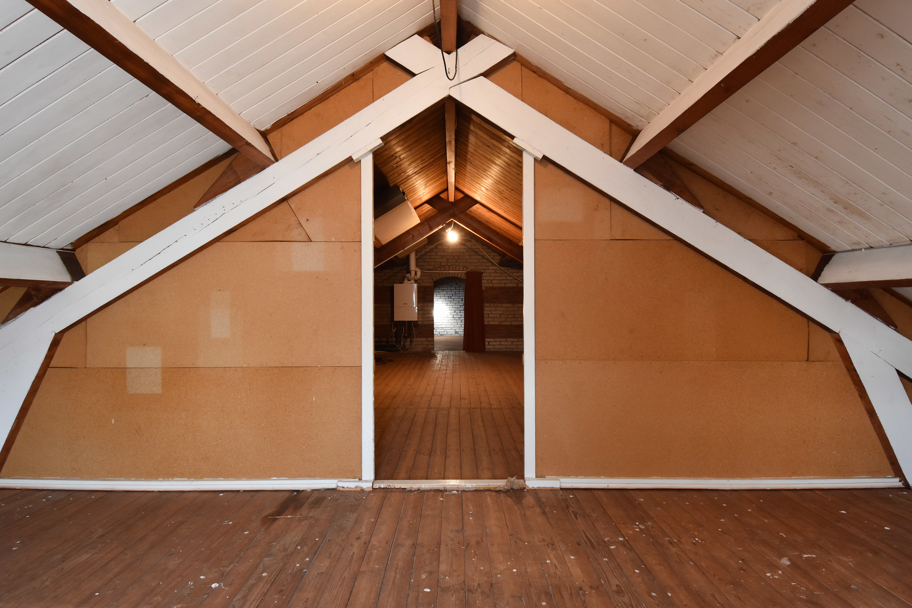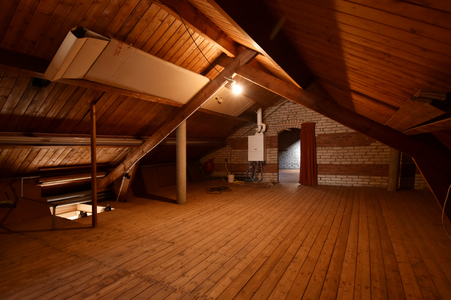 De zeer ruime zolder is over de gehele breedte van de woning, geeft veel bergruimte, maar ook mogelijkheden om eventueel kamers en/of hobby- of werkruimtes te realiseren.