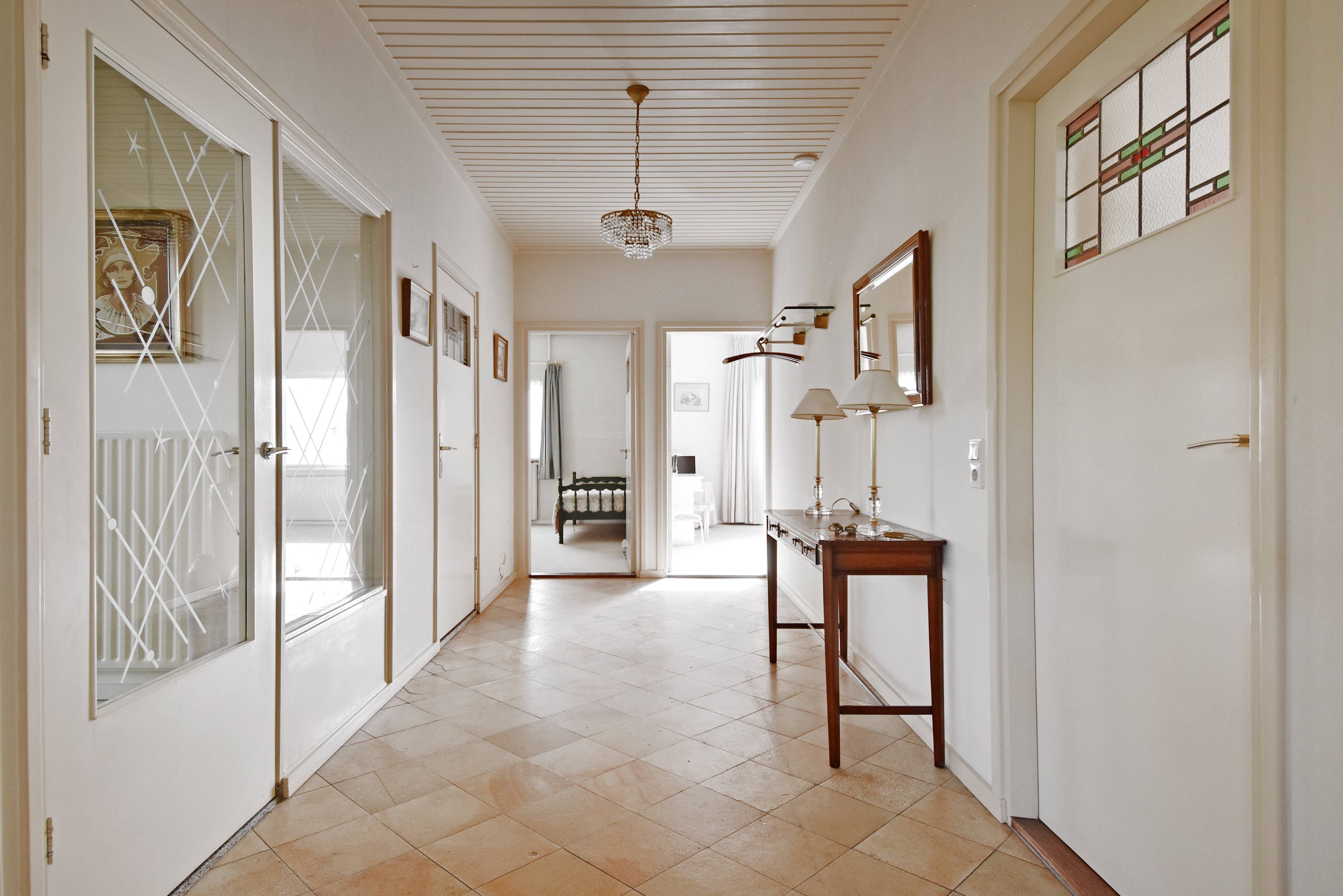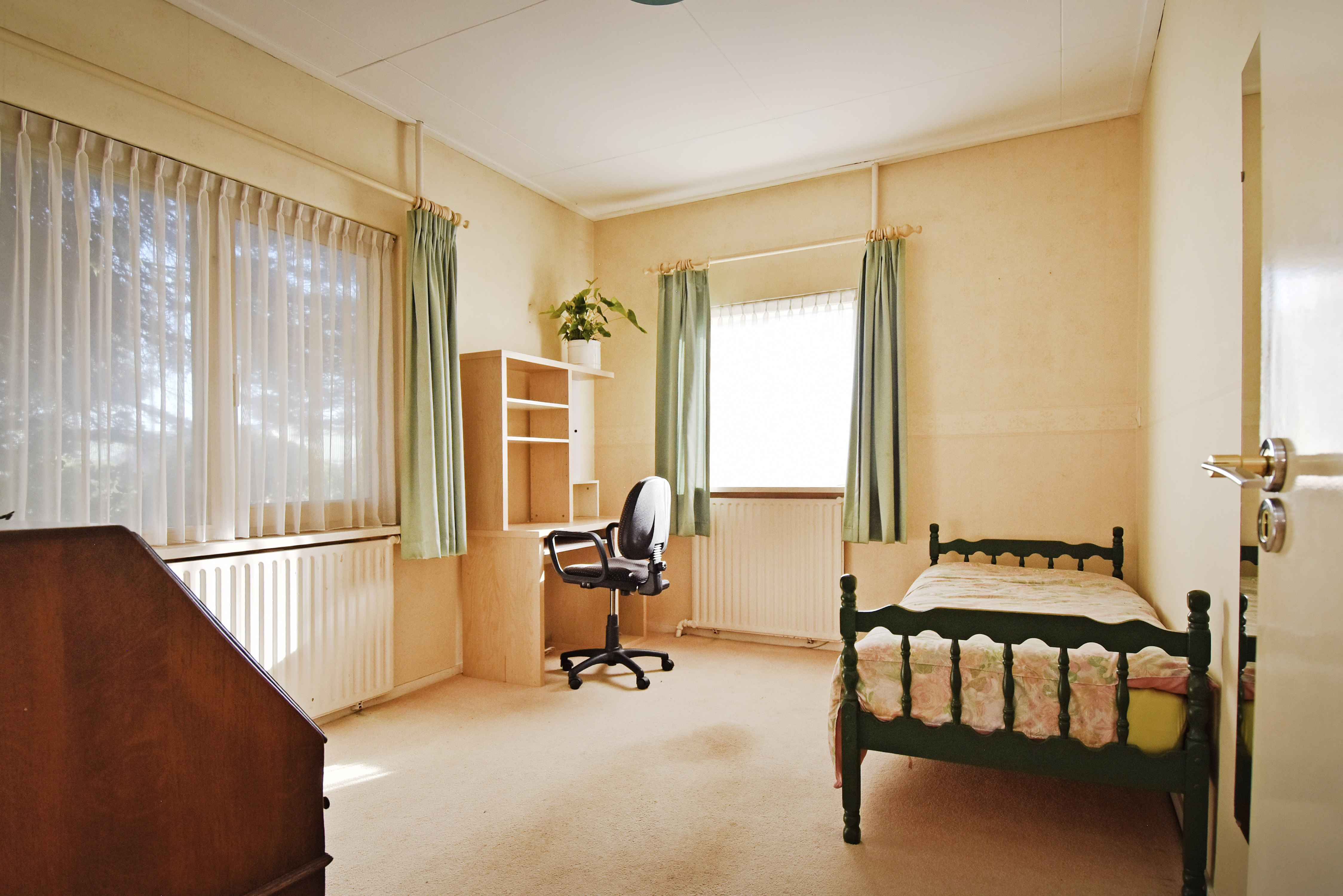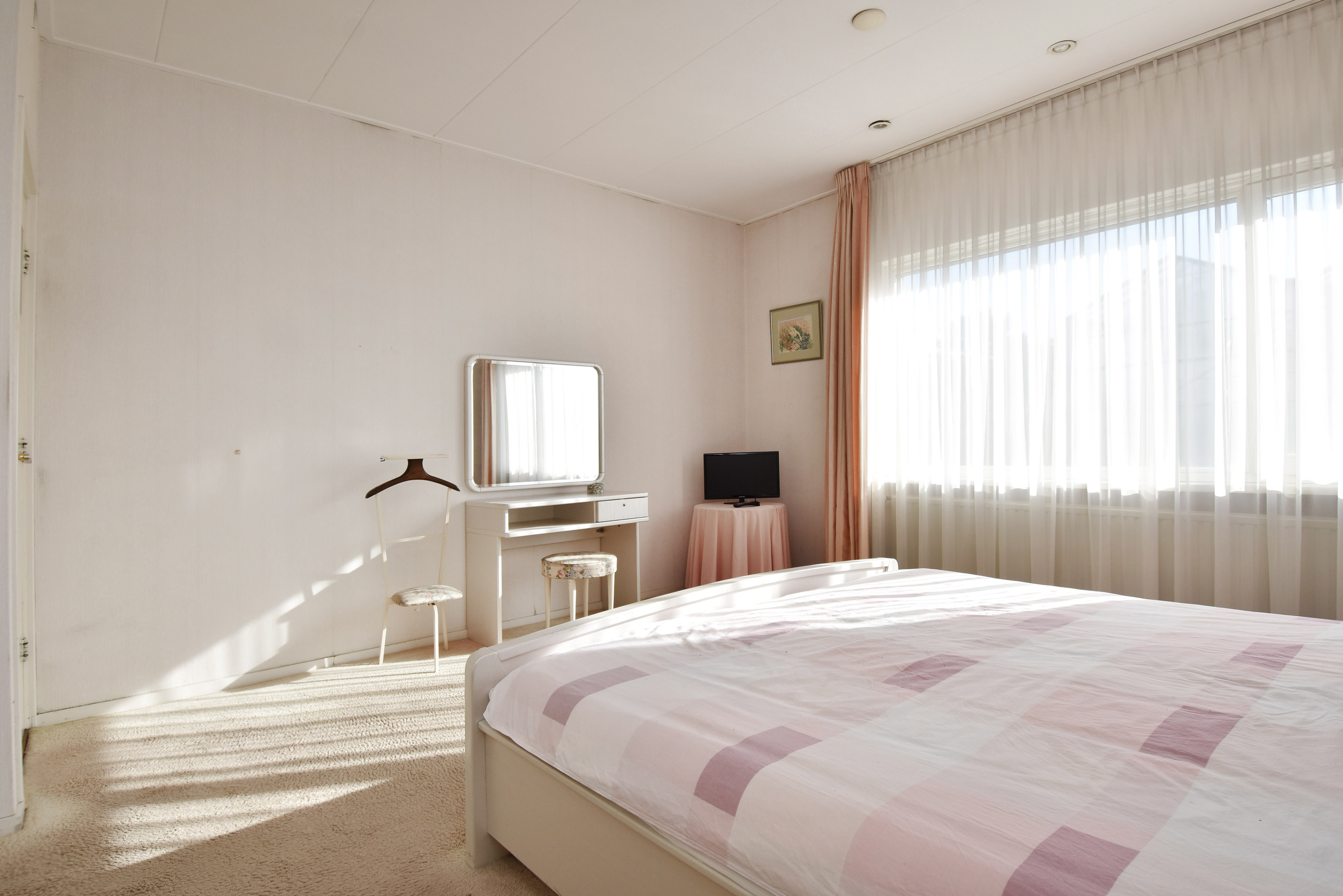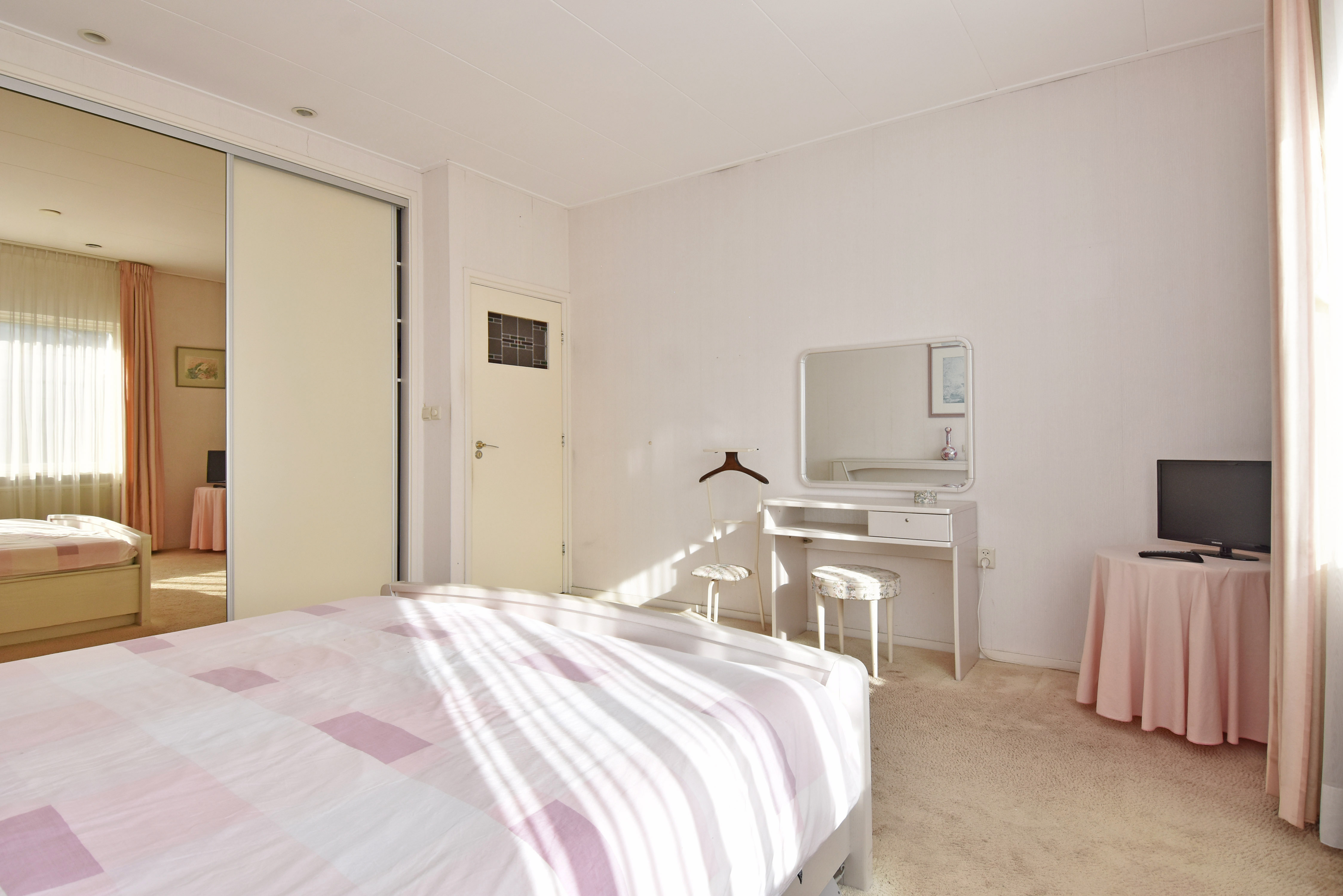 Aan de linkerzijde van de woning bevinden zich de twee ruime slaapkamers, allebei voorzien van vaste kasten en tevens grote raamkozijnen.