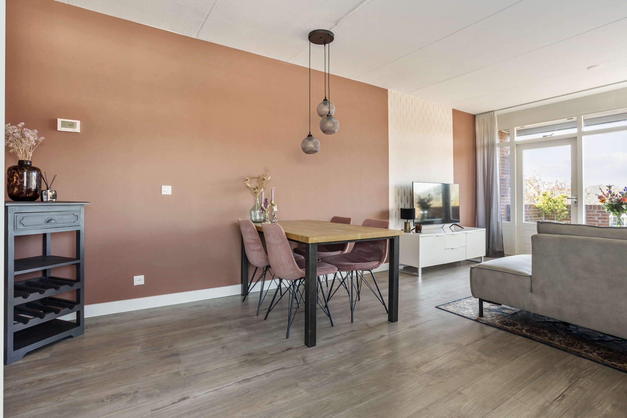 De gehele woning is zeer verzorgd afgewerkt met een grijs/bruine laminaatvloer en de wanden grotendeels voorzien van behang.