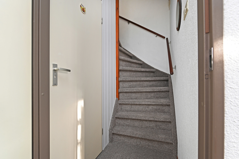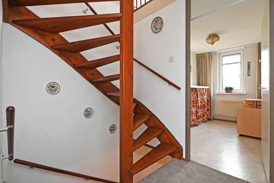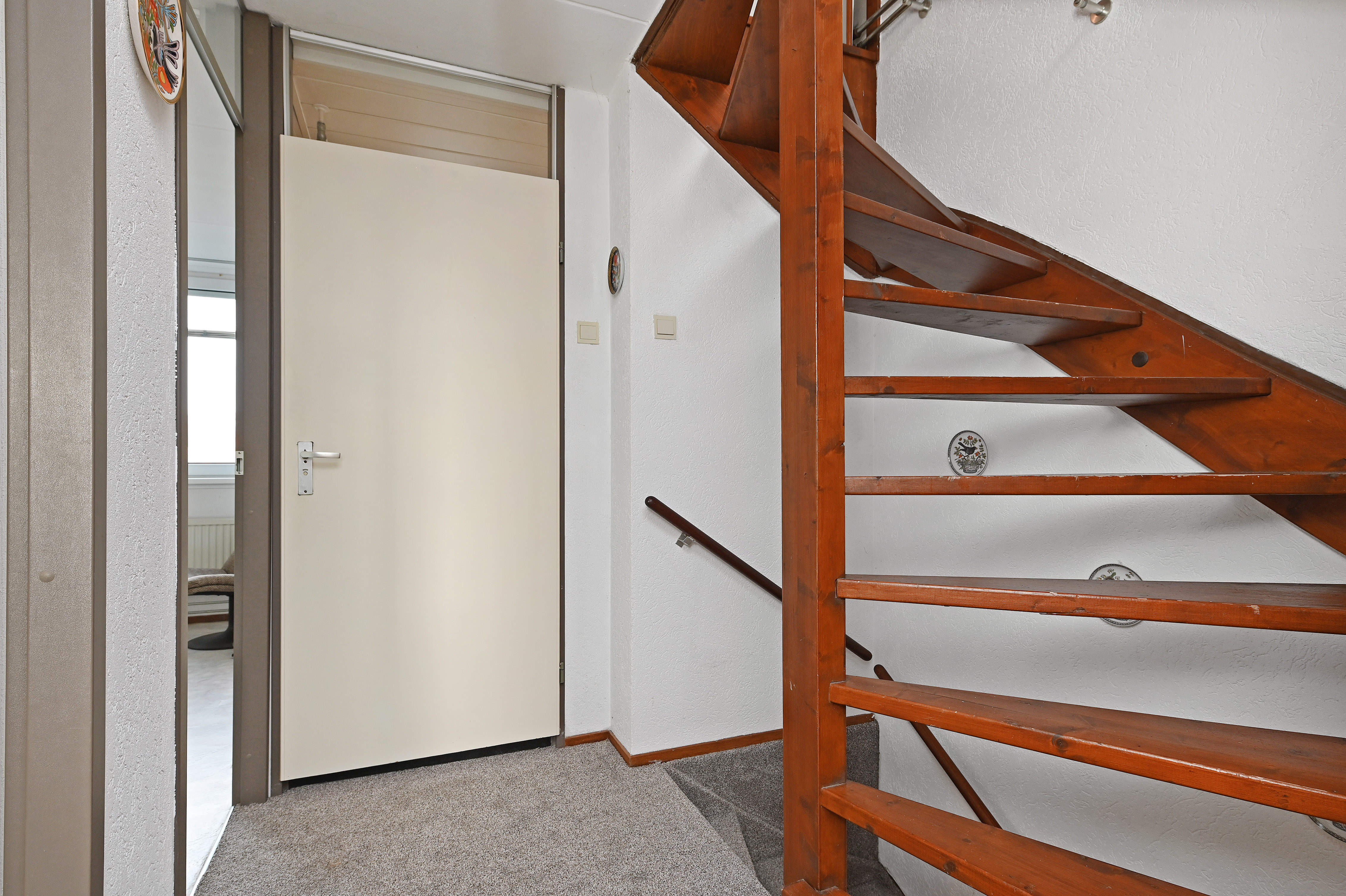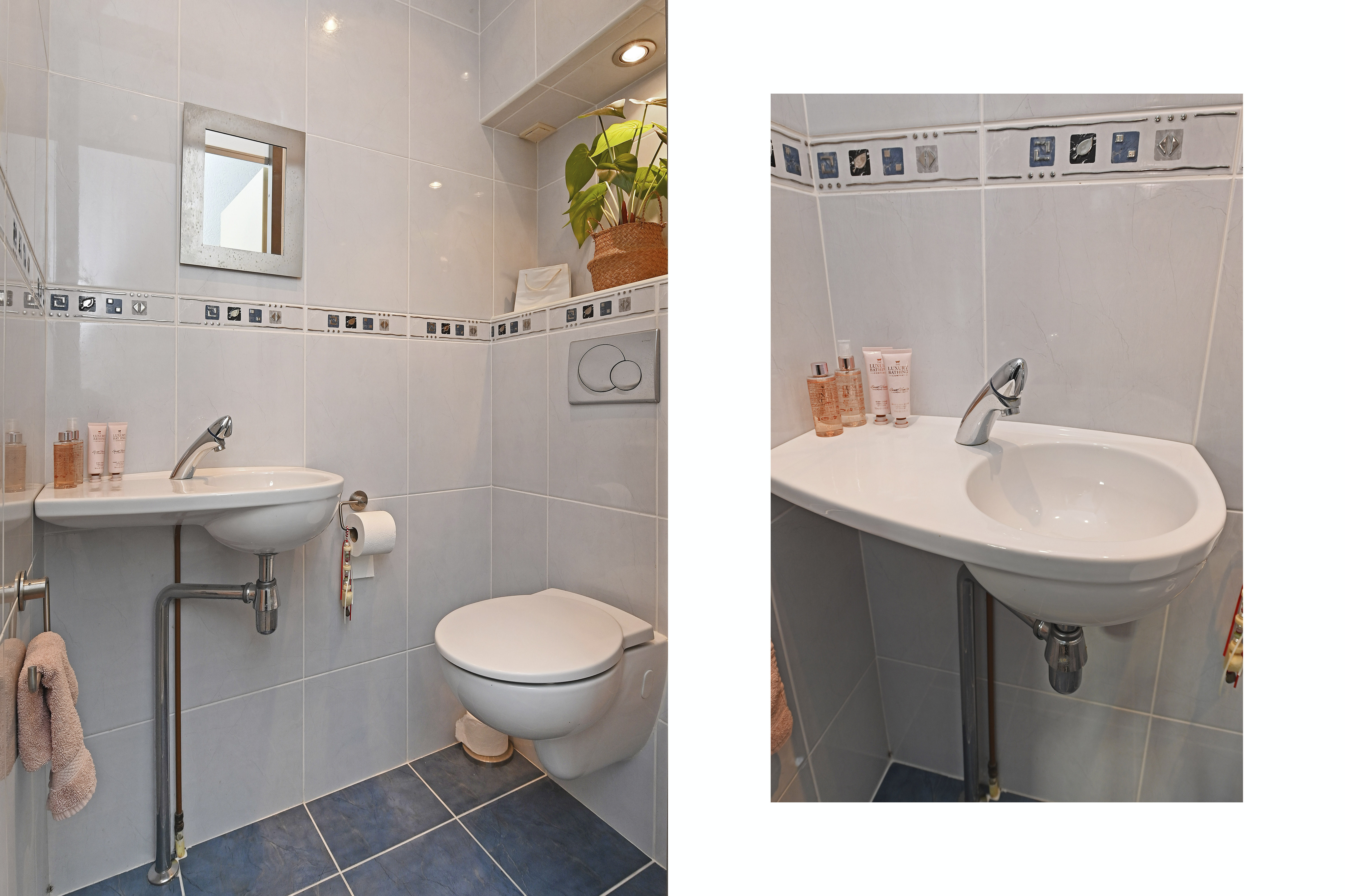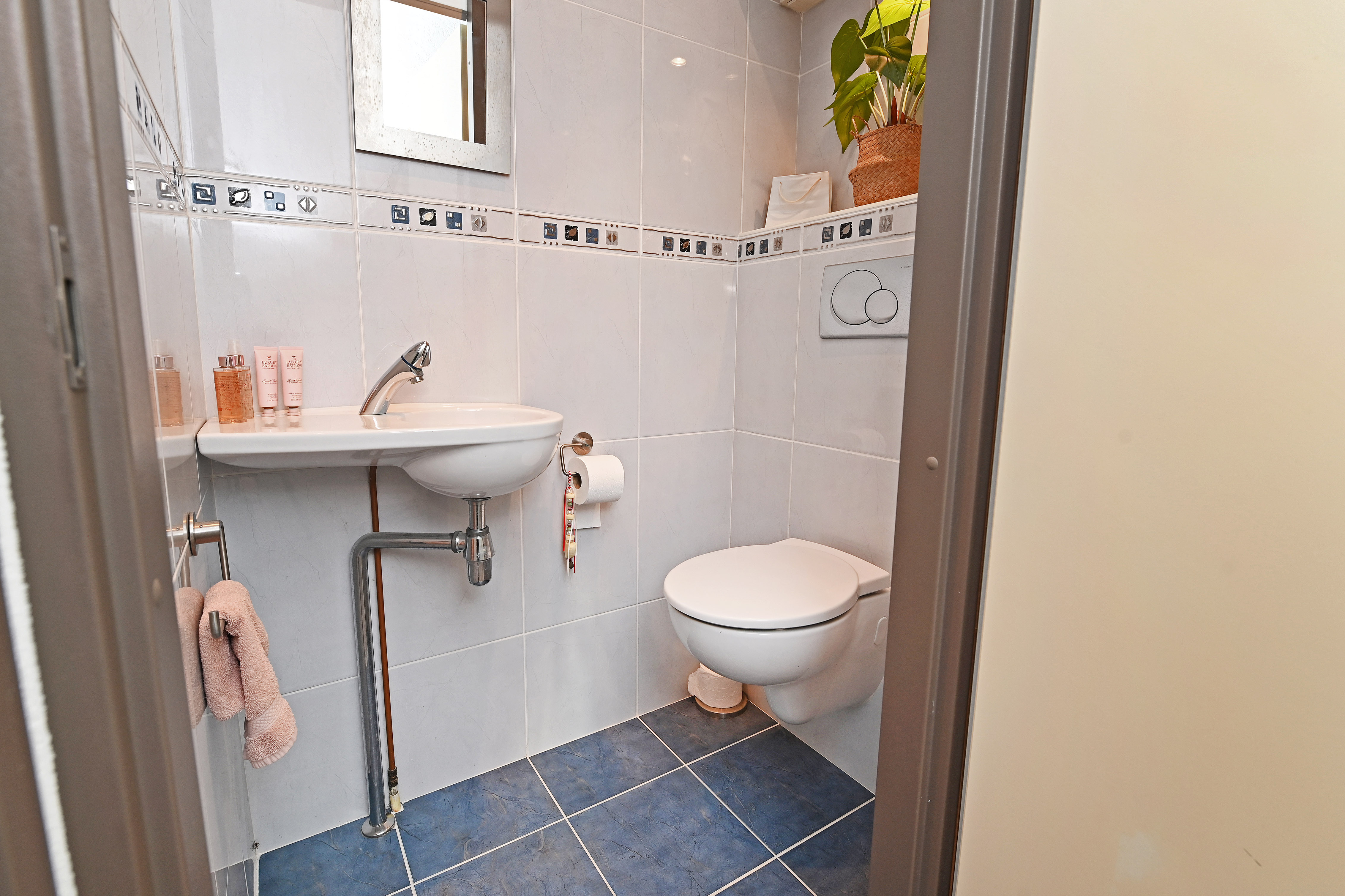 Via het tussenportaal bereik je het toilet met zwevend closet en fonteintje en de trap naar de eerste verdieping.