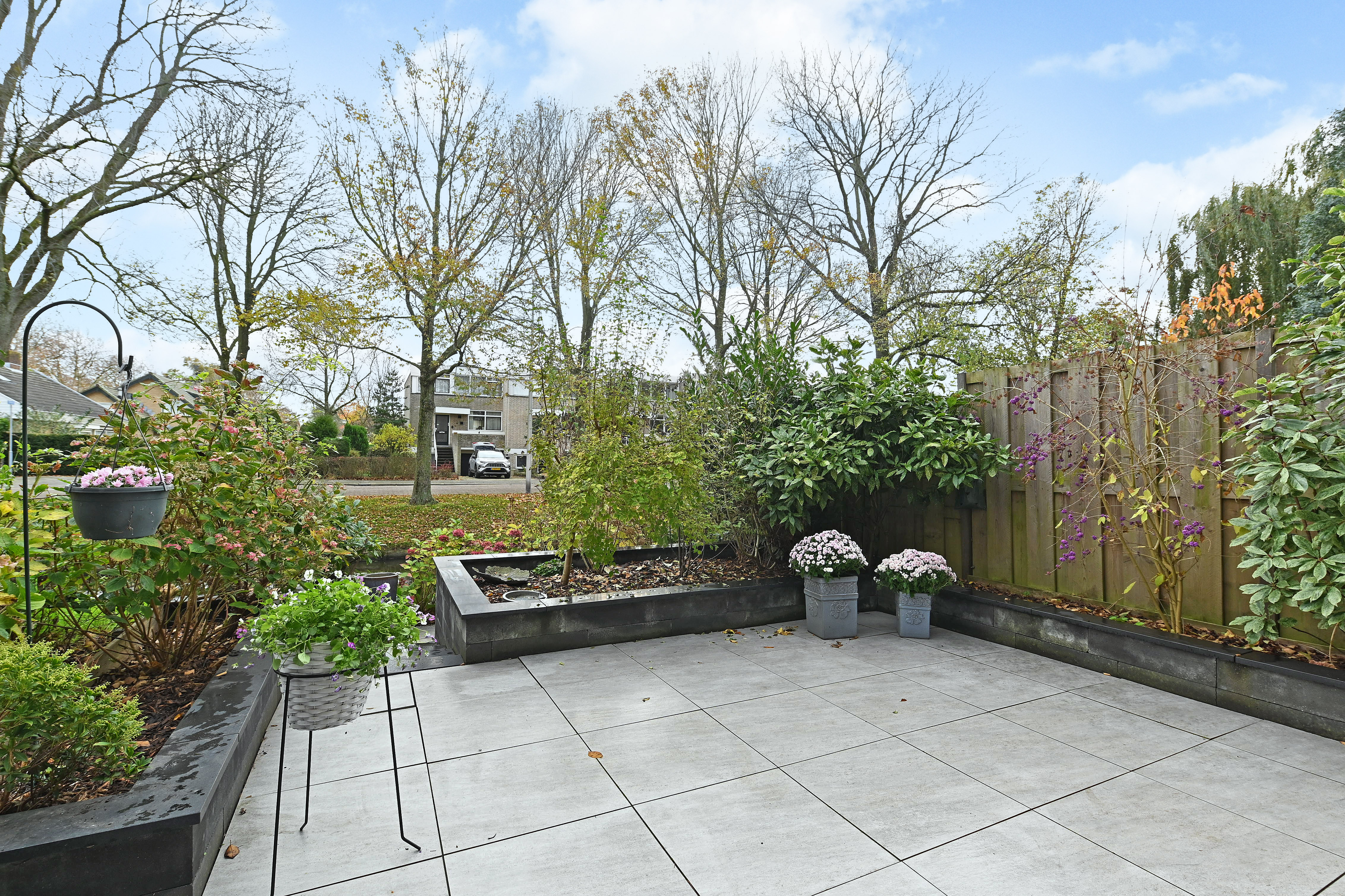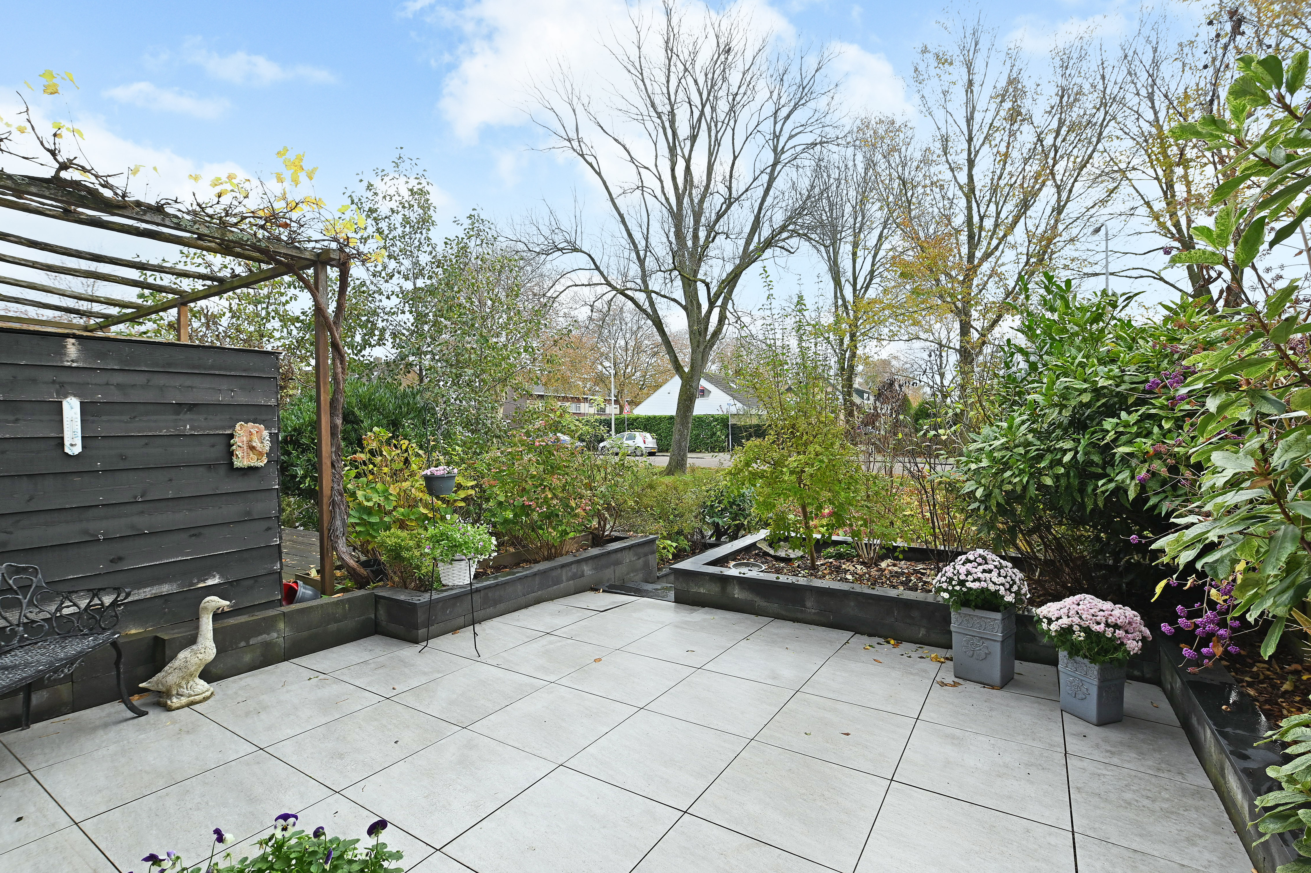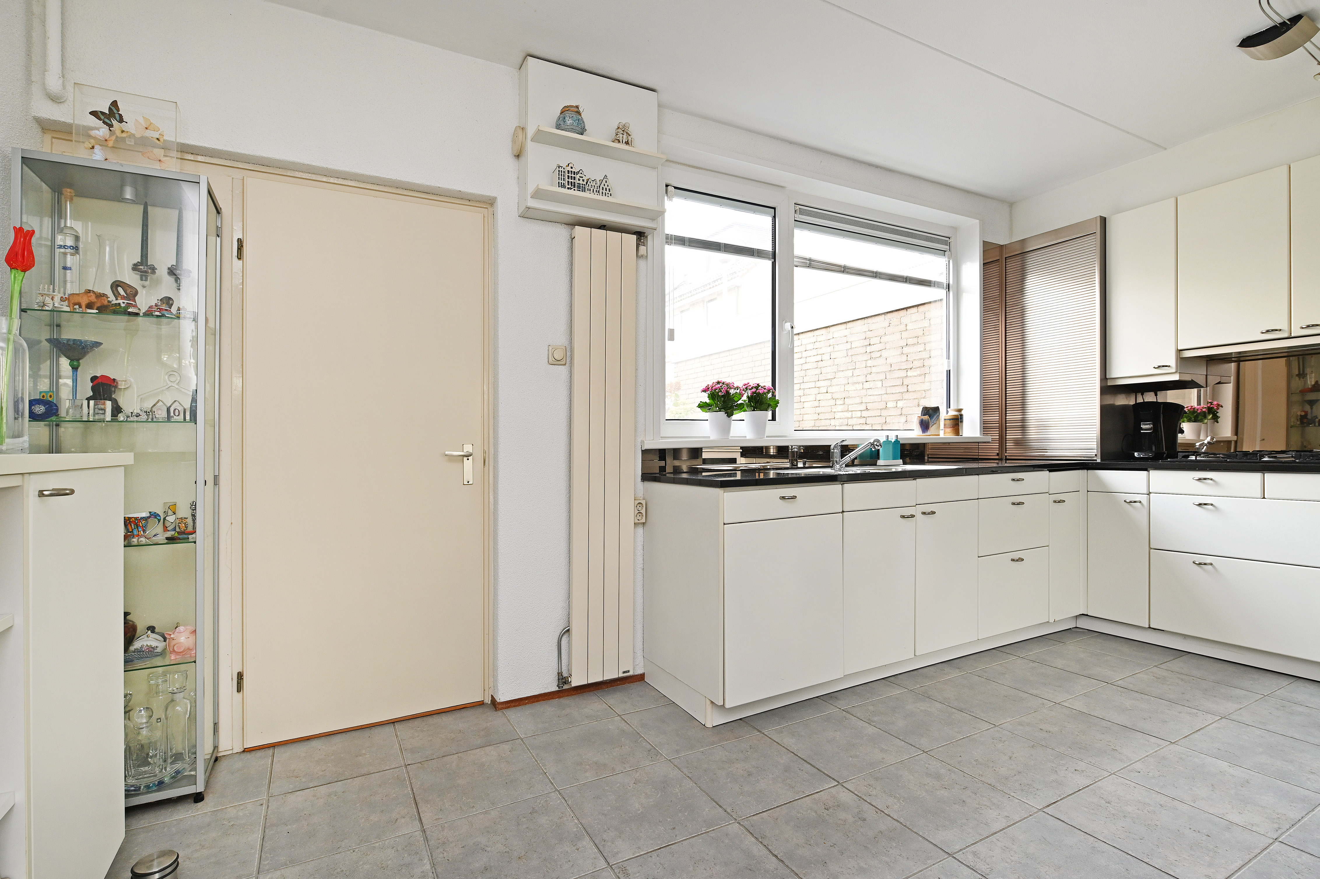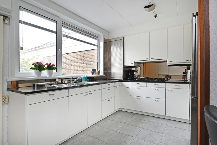 De zithoek is over de gehele breedte van de woonkamer met een groot raamkozijn en een deur naar de tuin. Een heerlijke plek om te vertoeven en van het uitzicht op de tuin te genieten.