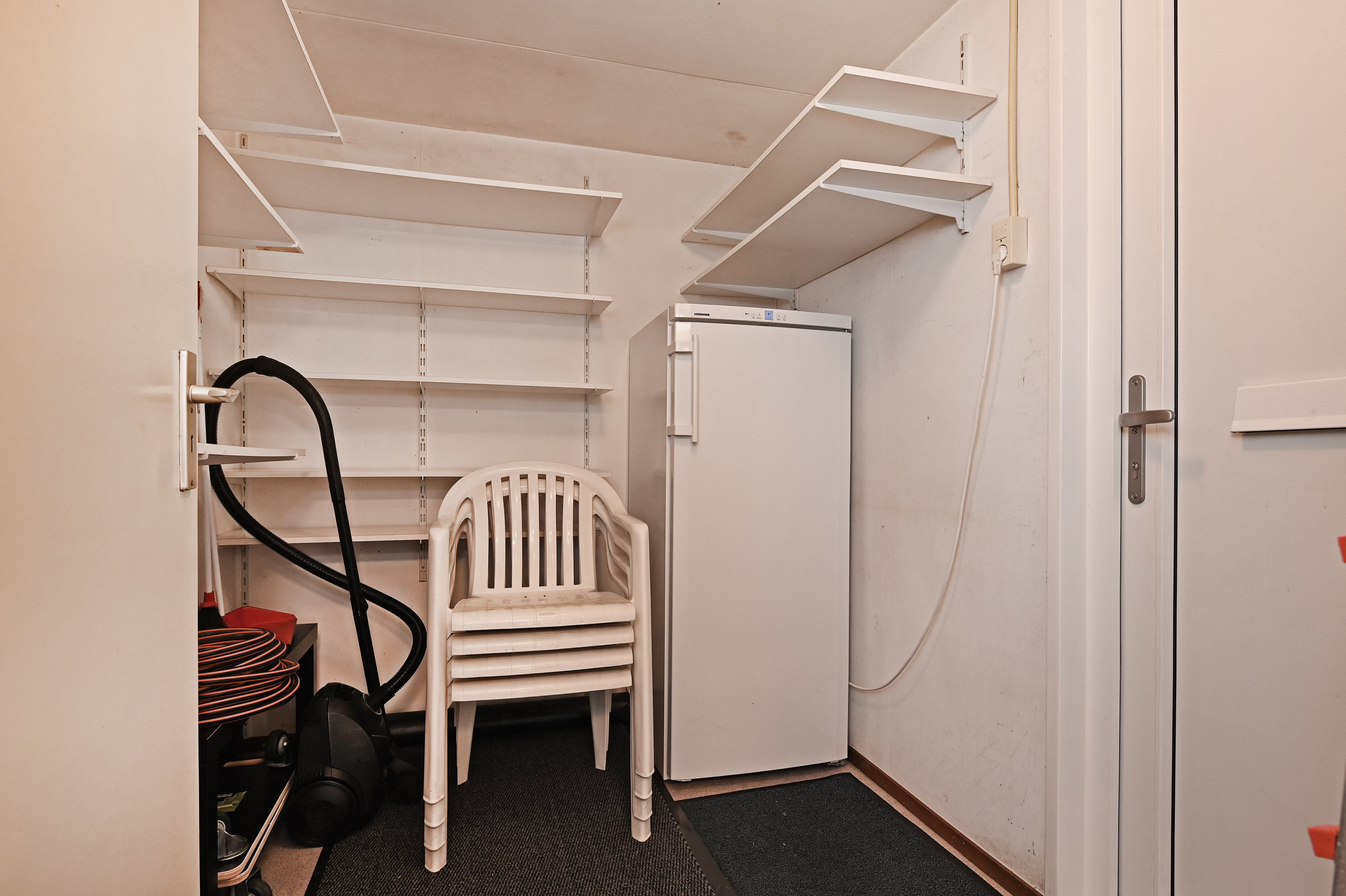 De berging is groot, heeft elektra en is zowel vanaf de straatzijde als vanuit de hal bereikbaar. Ideaal voor het stallen van fietsen, maar ook voor de stofzuiger en andere benodigdheden.