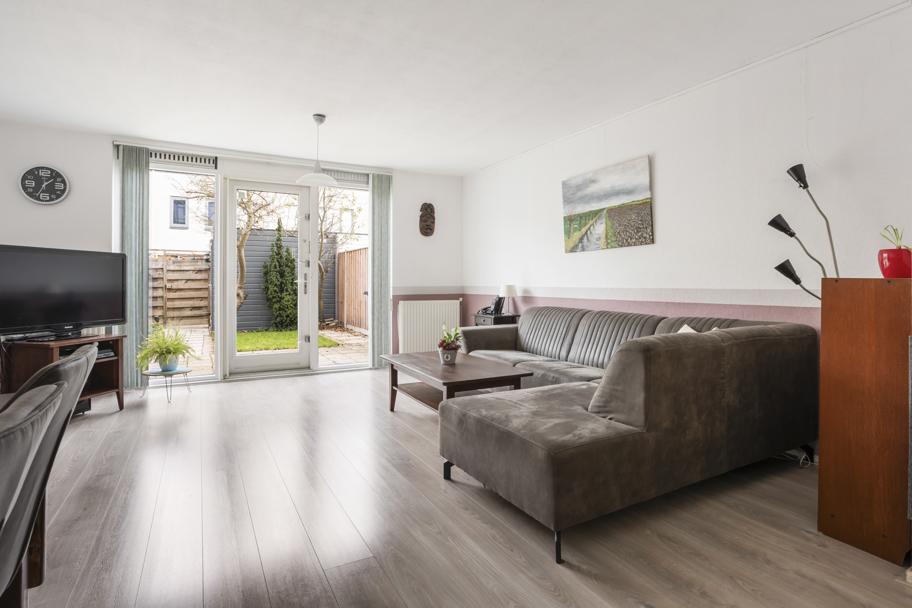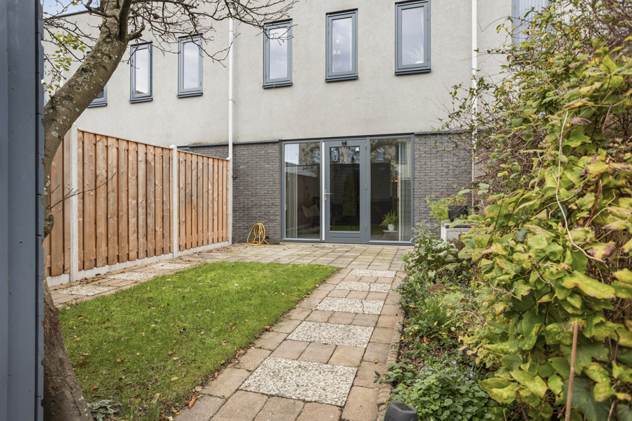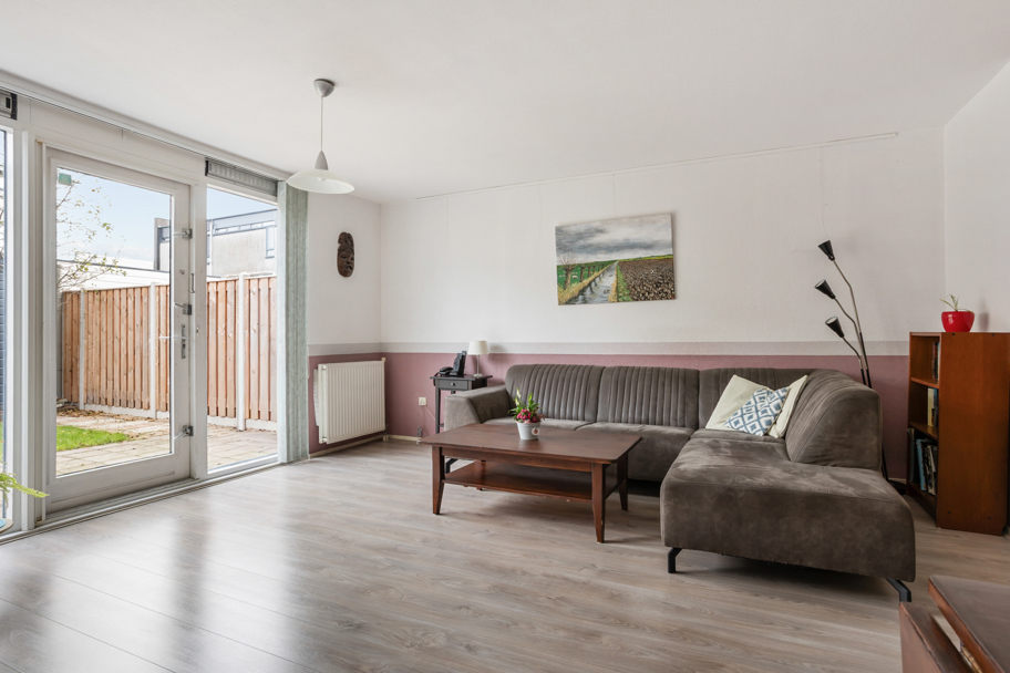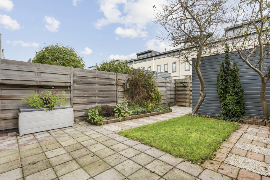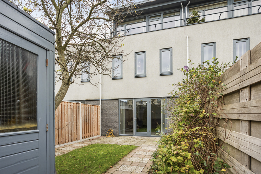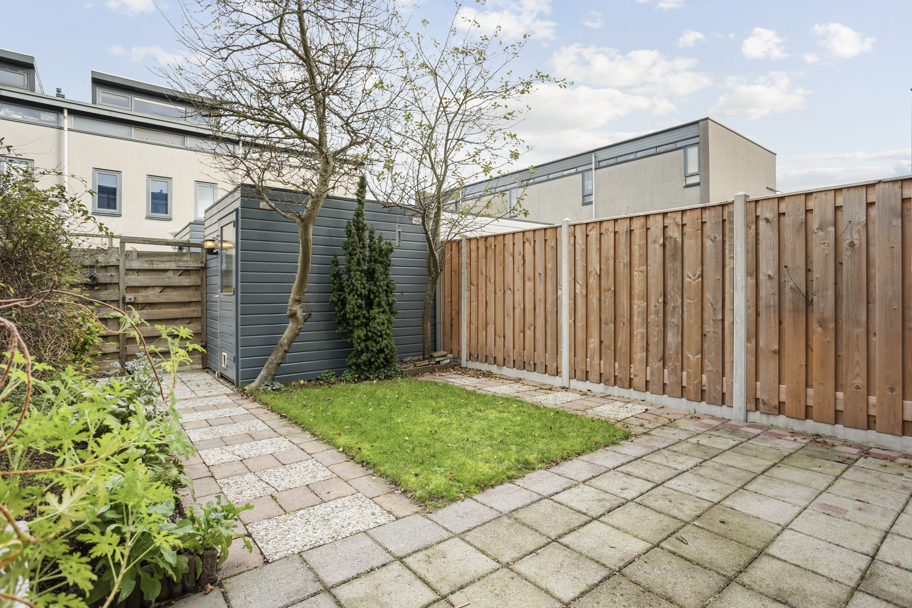 Voortuin met overkapping voor bijvoorbeeld de containers, entree, hal met meterkast en toilet met fonteintje. De tuingerichte woonkamer heeft een praktische vaste kast en grote raamkozijnen tot aan de grond met deur naar de verzorgde achtertuin. De achtertuin is vriendelijk aangelegd en heeft genoeg ruimte om een loungebank en/of eettafel neer te zetten om te genieten van het zonnetje. Aan de achterzijde bevindt zich een houten berging met elektra en een deur naar het achterpad. Ideaal voor het stallen van bijvoorbeeld je fietsen.