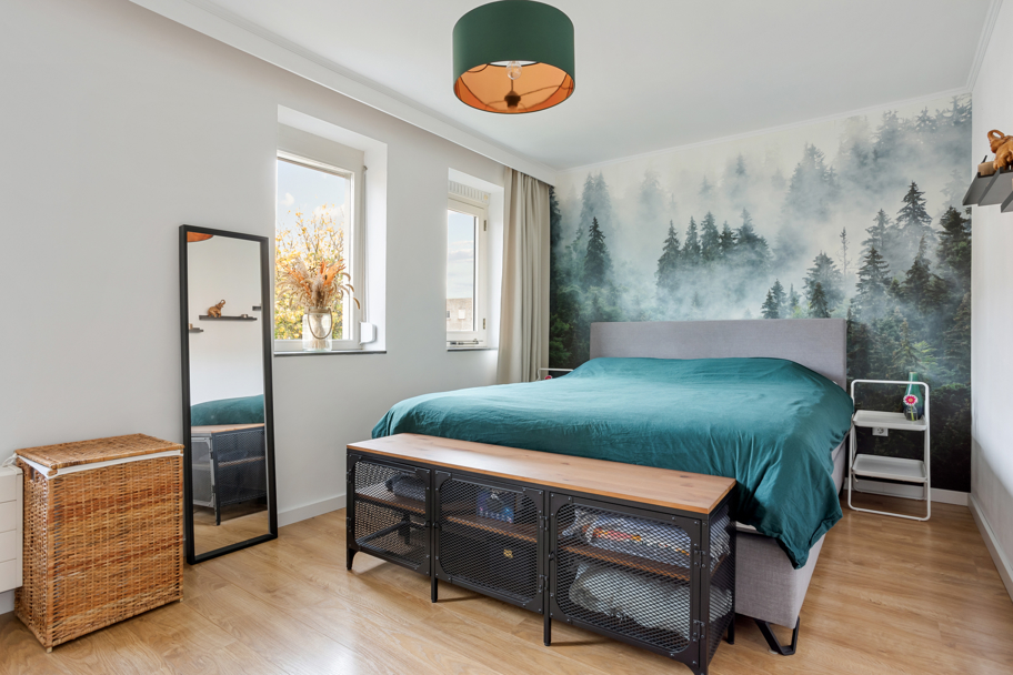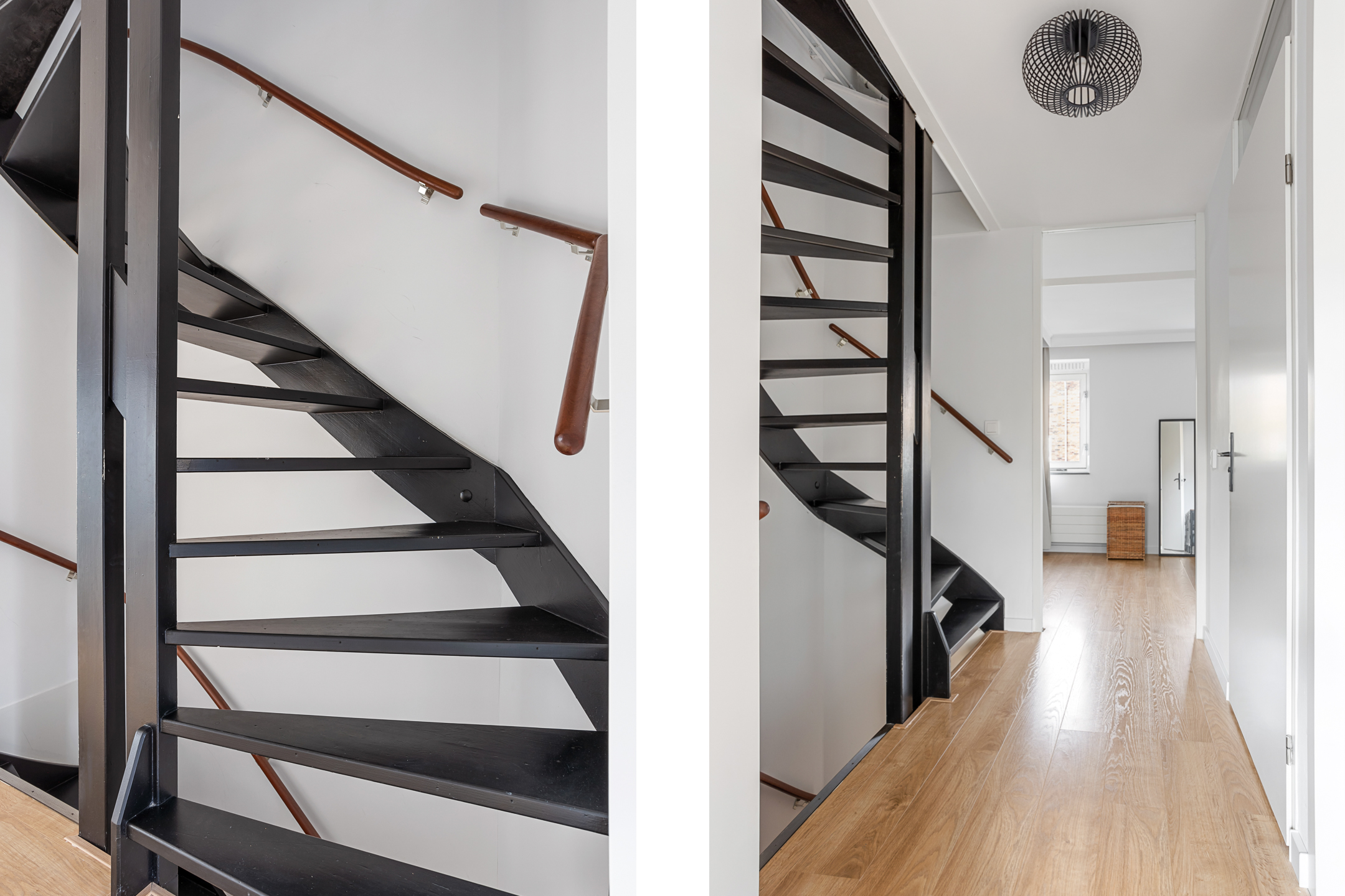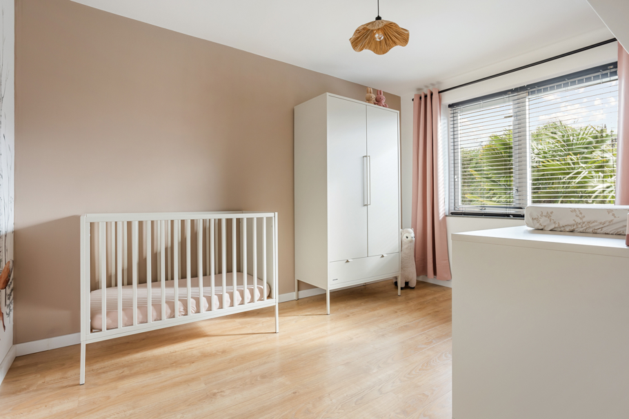 Zowel op de eerste als op de tweede verdieping zijn de overloop en slaapkamers afgewerkt met een lichte laminaatvloer.
