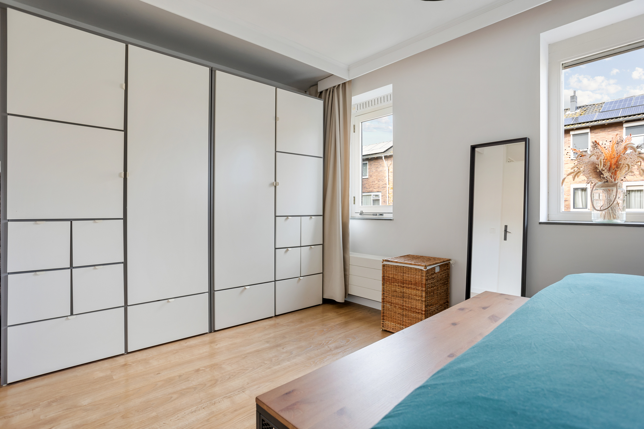 In een korte, autoluwe straat, met openbare parkeergelegenheid om de hoek, ligt deze goed verzorgde eengezinswoning met 3 woonlagen + vliering, 4 slaapkamers, een zonnige tuin, moderne en complete keuken, luxe toilet en badkamer en 8 zonnepanelen. De woning is licht en ruim opgezet en heeft een prettige ligging aan een fietspad in een kindvriendelijke woonwijk met alle voorzieningen op korte afstand.